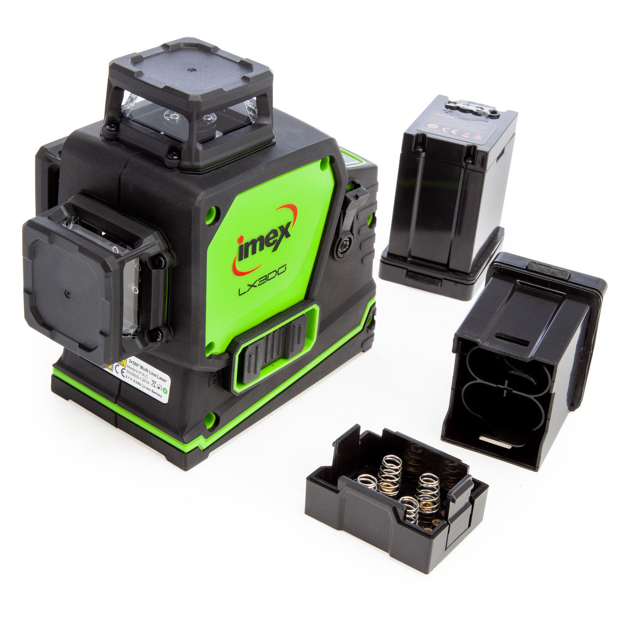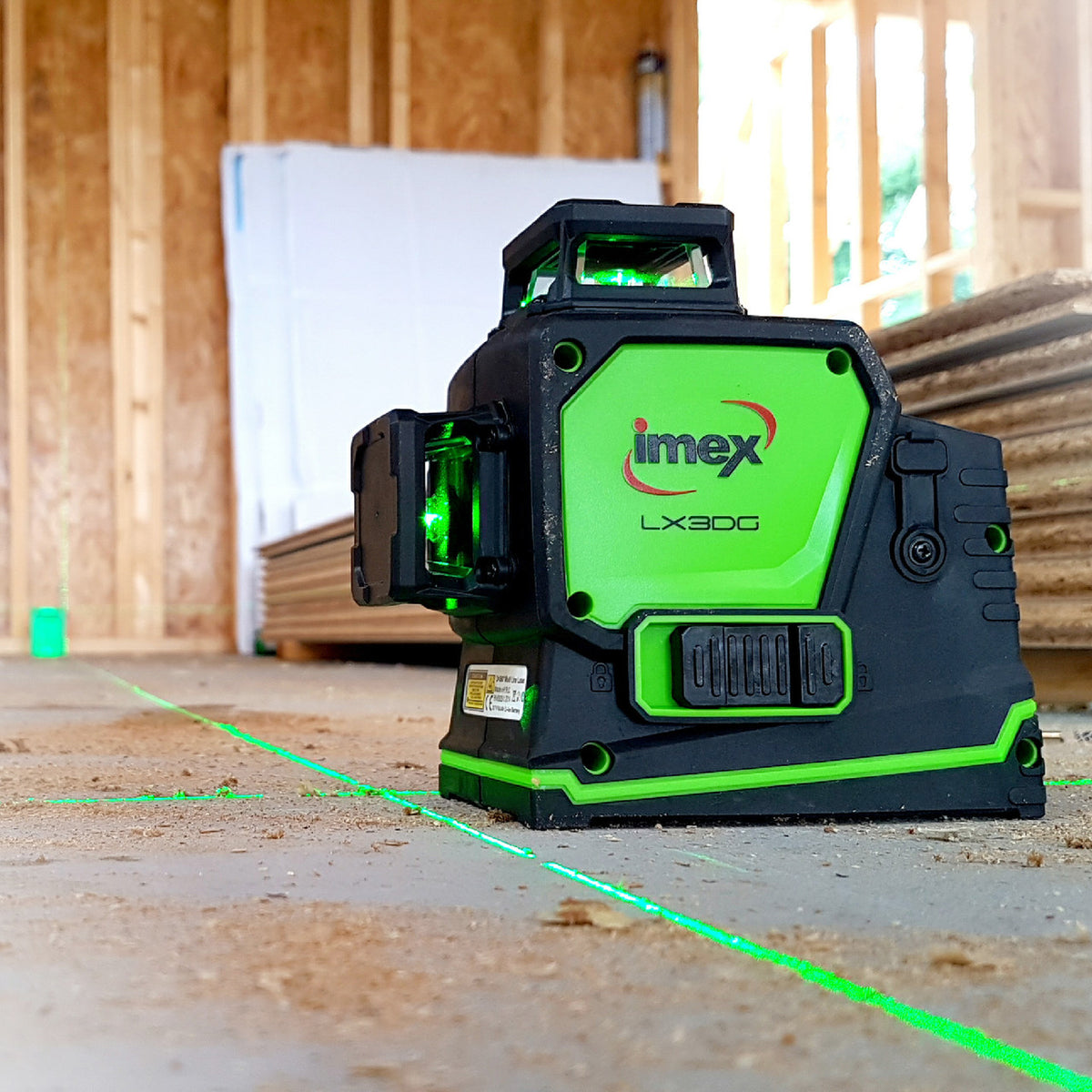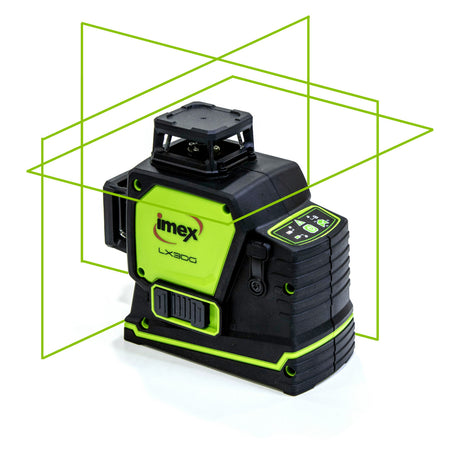 The Imex LX3DG is a line laser that has everything. Boasting 3-360° lines with an offset so that all lines are uninterrupted simultaneously. The Imex LX3DG in green beam is the ultimate in interior laser levelling with world first lithium and alkaline batteries, accurate lines long range and outdoor mode. It has a Working Distance of 30m and 80m with detector (not included). The LX3DG also has the longest run time in it’s class and is also a drop test and oven temperature winner. The Imex LX3DG is the ultimate in interior laser levelling.