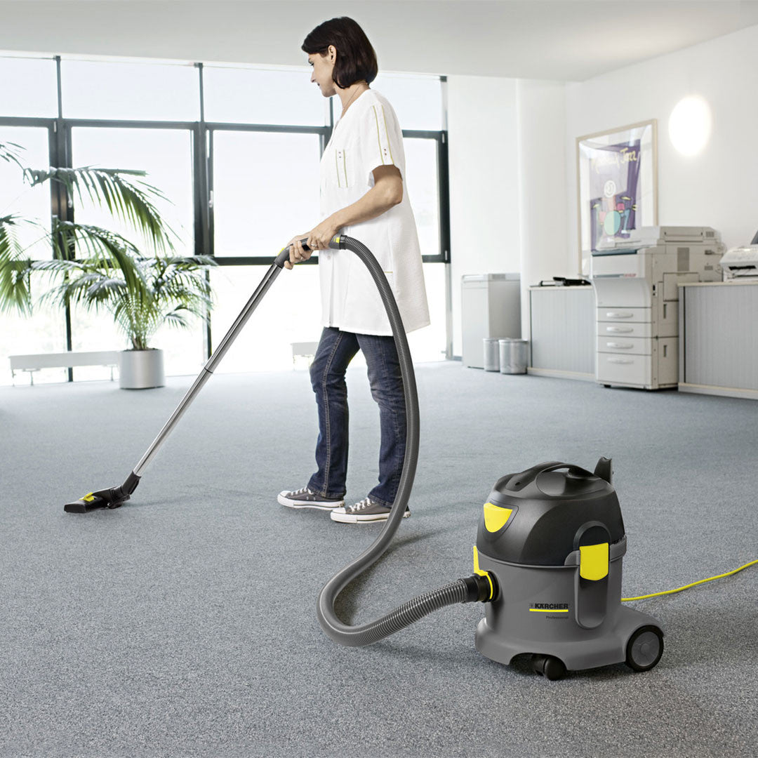 The T 10/1 vacuum cleaner is designed for professional use in dry applications, delivering great results in demanding tasks. It is robust enough to withstand the demands of contract cleaning, offering powerful filtration and easy operation. This model benefits from a foot switch, meaning no need to bend down to power up the vacuum. The large, round permanent main filter is made from washable nylon, making it extremely strong and dense enough to allow vacuuming for longer periods of time.