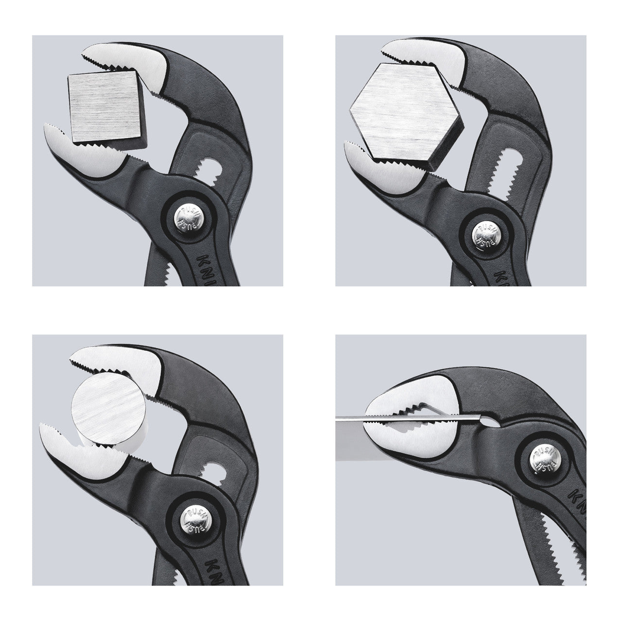 Knipex Cobra Hightech Water Pump Pliers are manufactured from chrome vanadium electric steel that has been forged and multi stage oil-hardened