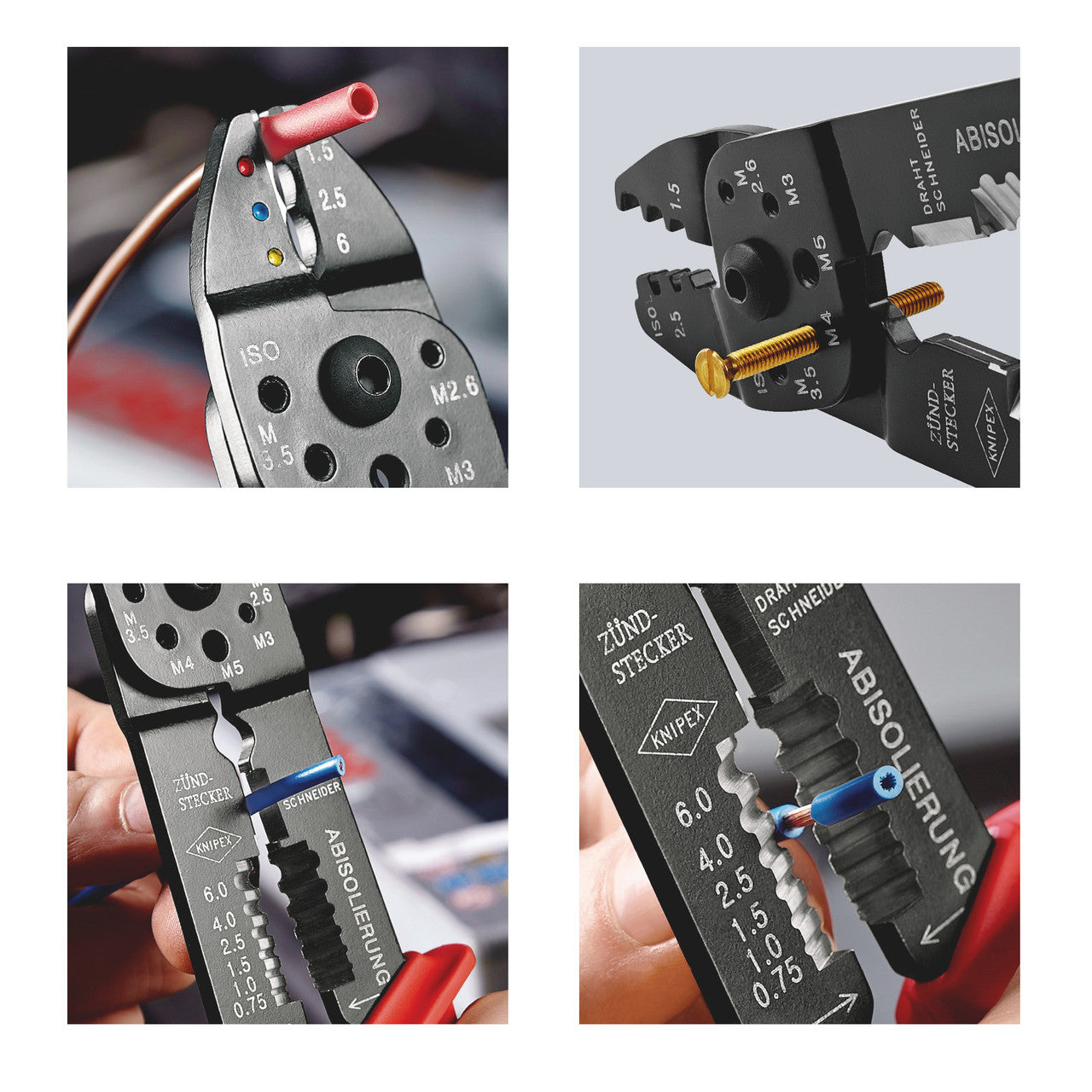 Knipex Crimping Pliers with threaded holes for cutting copper and brass screws threaded M 2.6 / M 3 / M 3.5 / M 4 and M 5