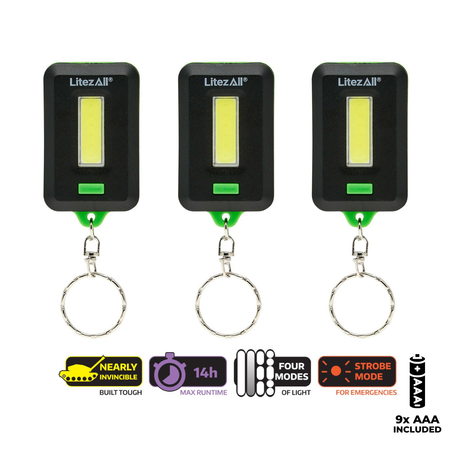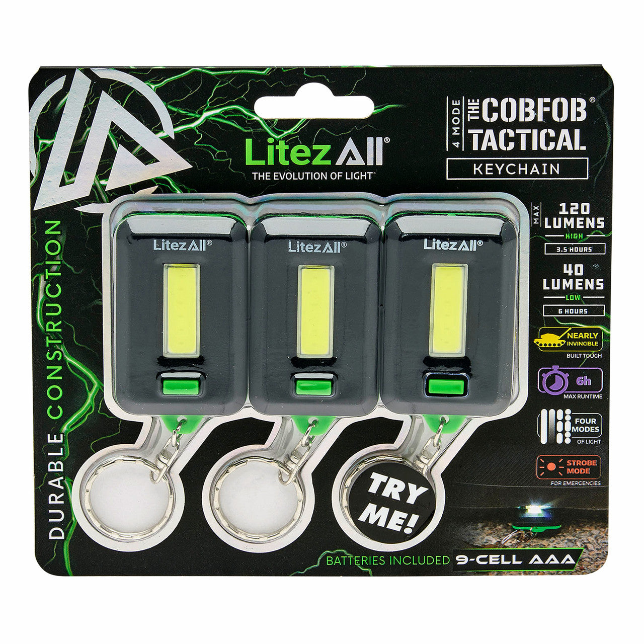 LitezAll 24389 CobFob Tactical Keychain 120 Lumens (3 Pack)