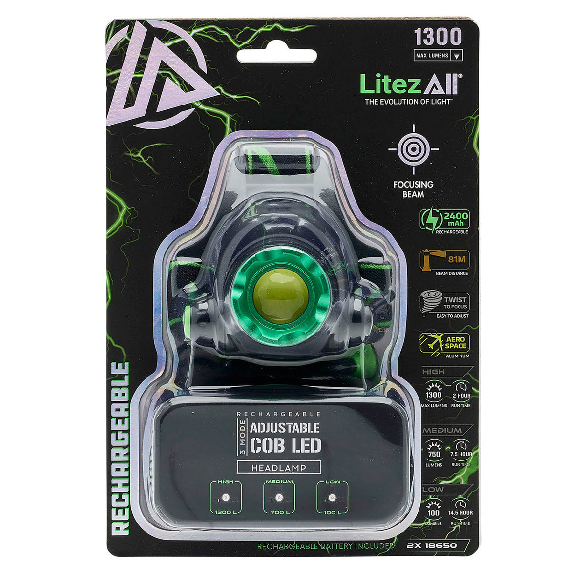 LitezAll 25188 Rechargeable Head Torch 1300 Lumens