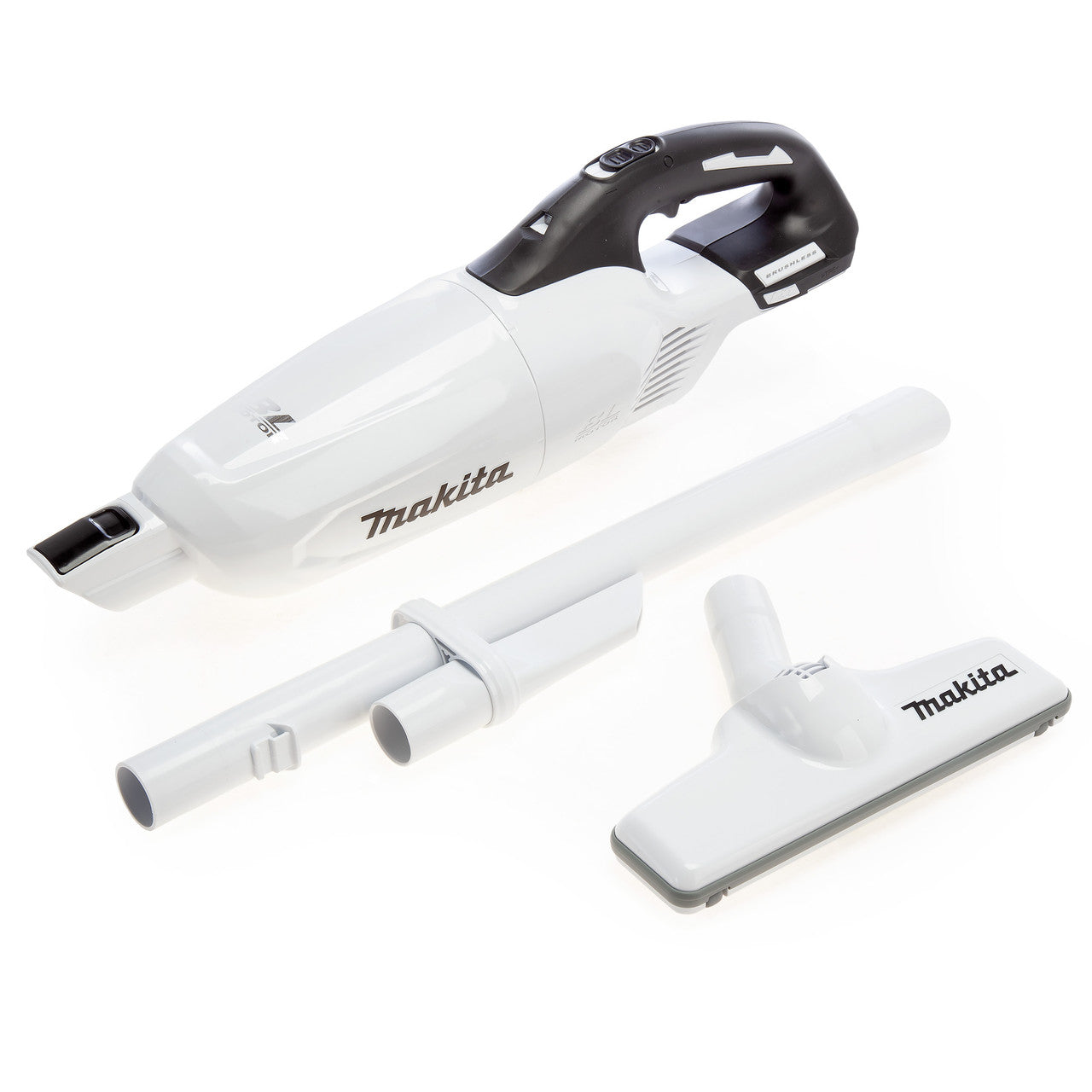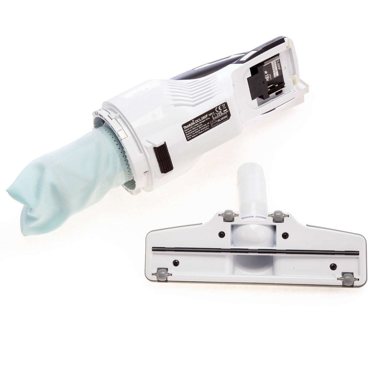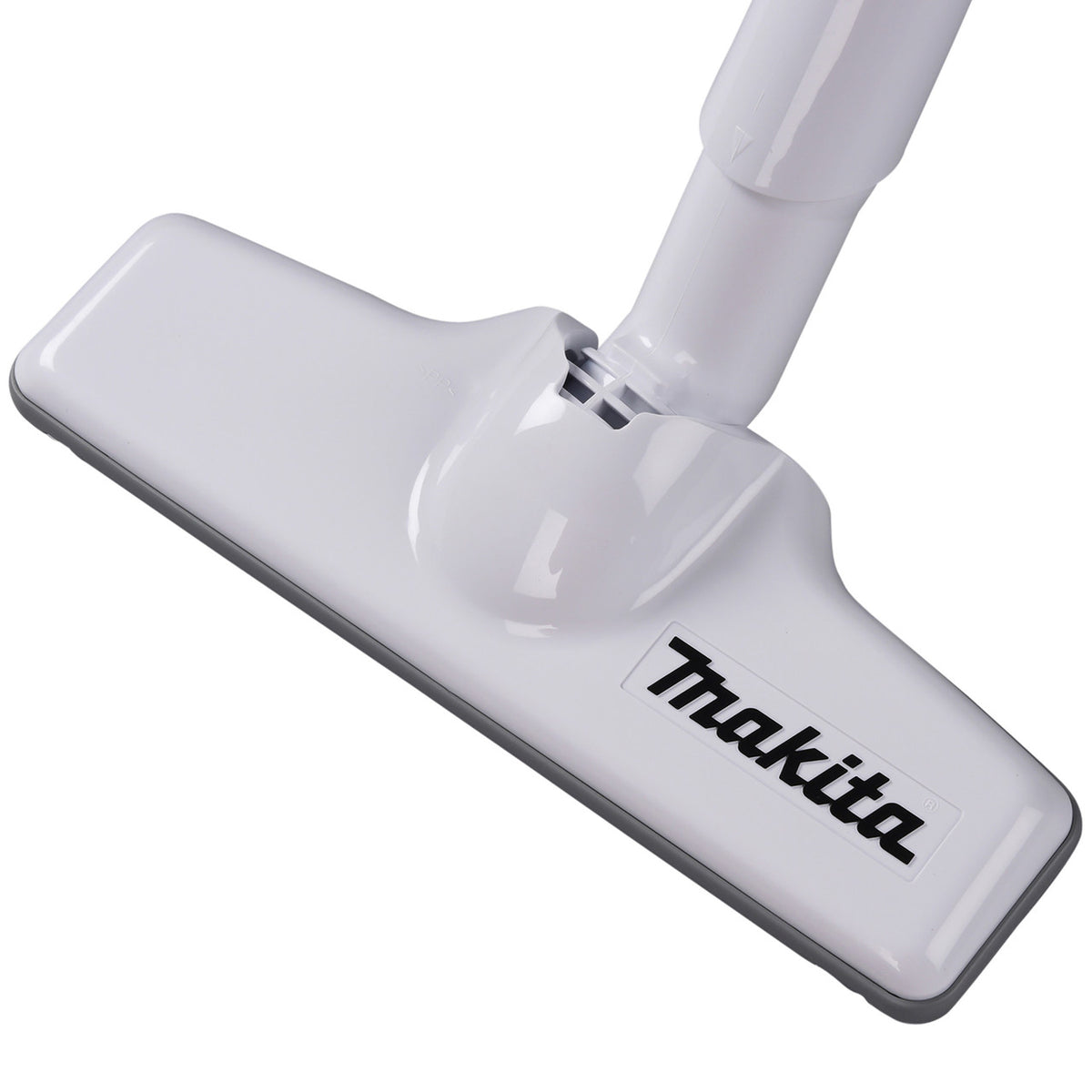 The Makita DCL280FZW in White is a lightweight and portable vacuum cleaner ideal for home, professional or office use. The brushless motor ensures maximum power, increased runtime and long life for improved dust-resistant performance. The floor nozzle swivel joint design keeps the vacuum head close to the surface and enables 360º rotation for easy high-reach cleaning and ergonomic soft grip reduces fatigue over continued use. Excellent suction power, fast and hassle-free, perfect for cleaning floors, stairs, work areas and even cars. Fitted with stepless power adjustment from the operating switch and a LED light. Body-only version, battery and charger not included.