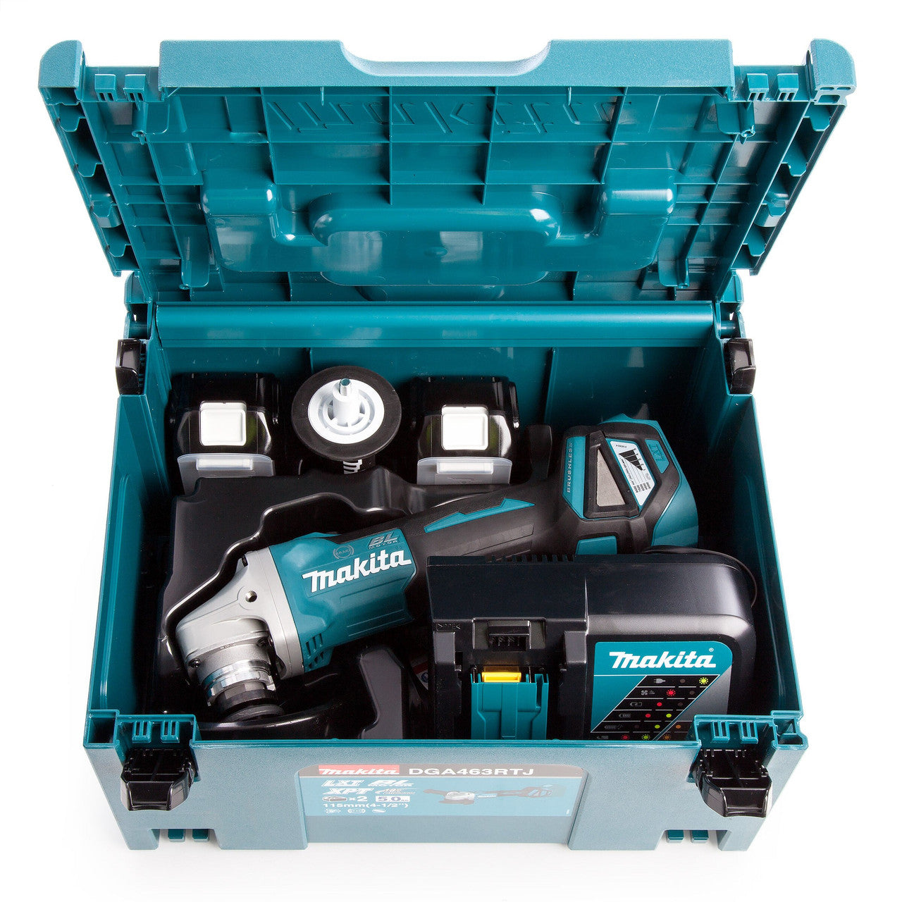 Makita DGA463RTJ 18V 115mm Cordless Angle Grinder (2 x 5.0Ah Batteries)