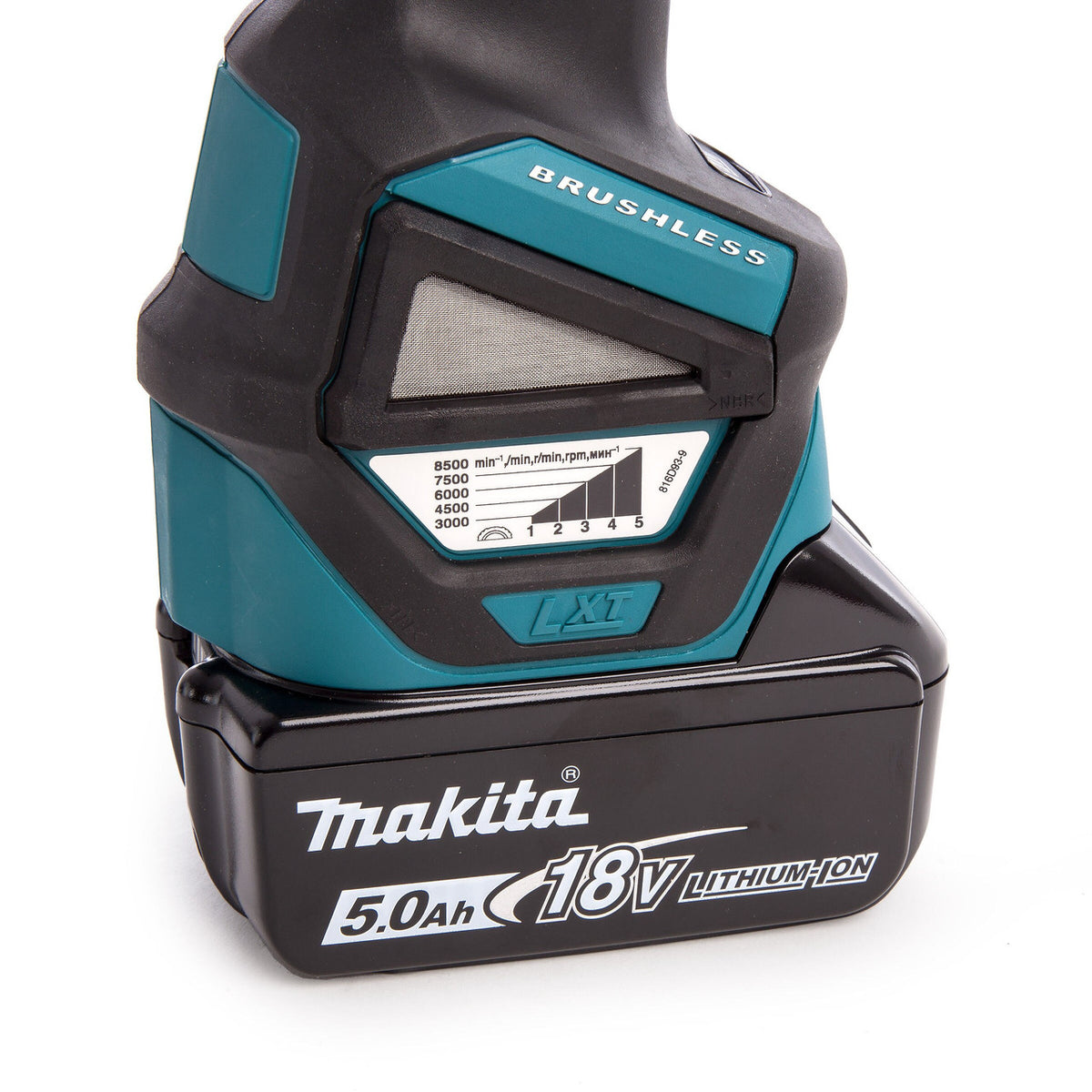 Makita DGA463RTJ 18V Brushless Angle Grinder 115mm (2 x 5.0Ah Batteries)
