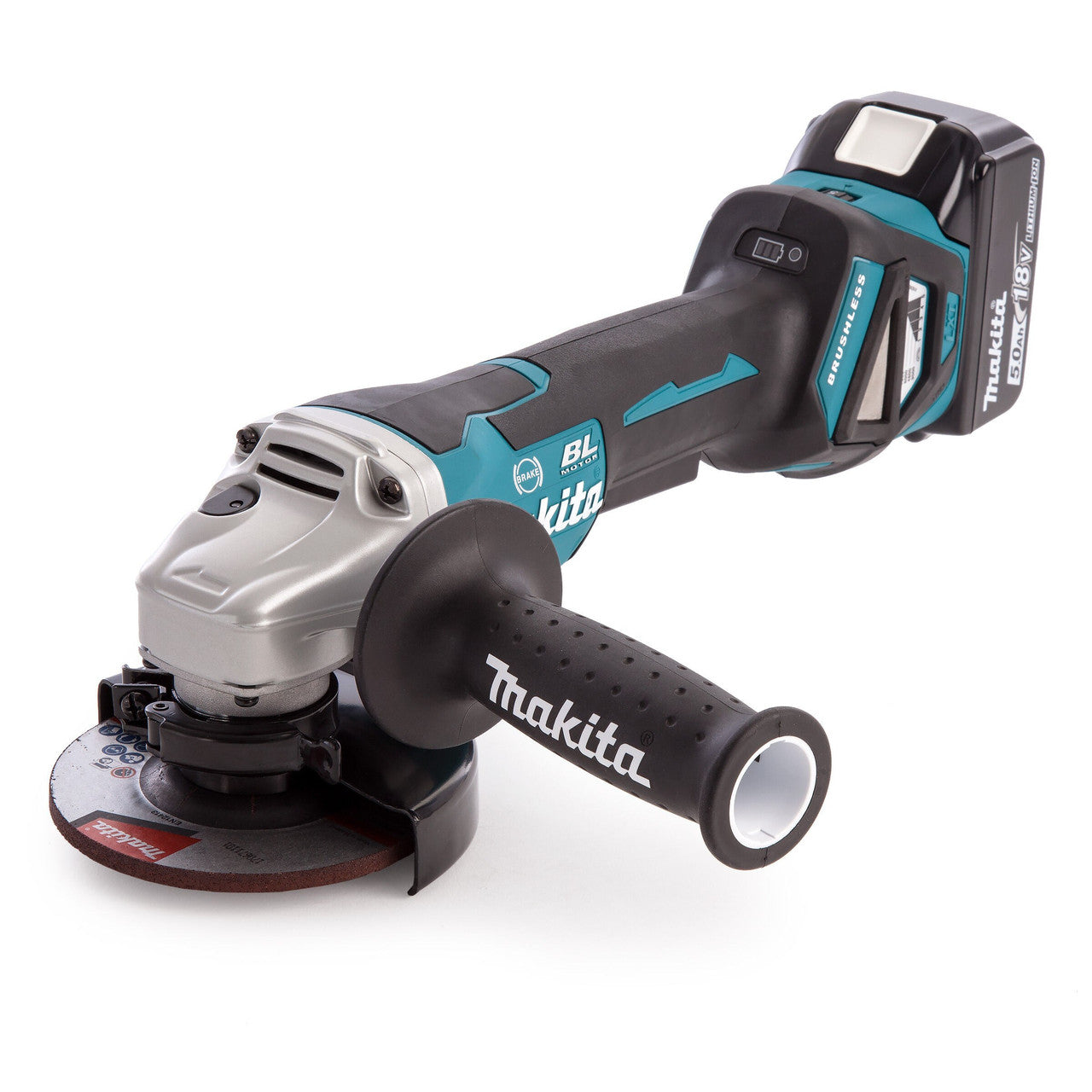 The Makita DGA467 adjusts speed and torque during operation for optimum performance meaning less effort is required by the user. Wire mesh intake covers are also engineered to prevent debris from entering the motor and therefore maintaining a high performance. This model comes with 2 x 5.0Ah Batteries and a charger.