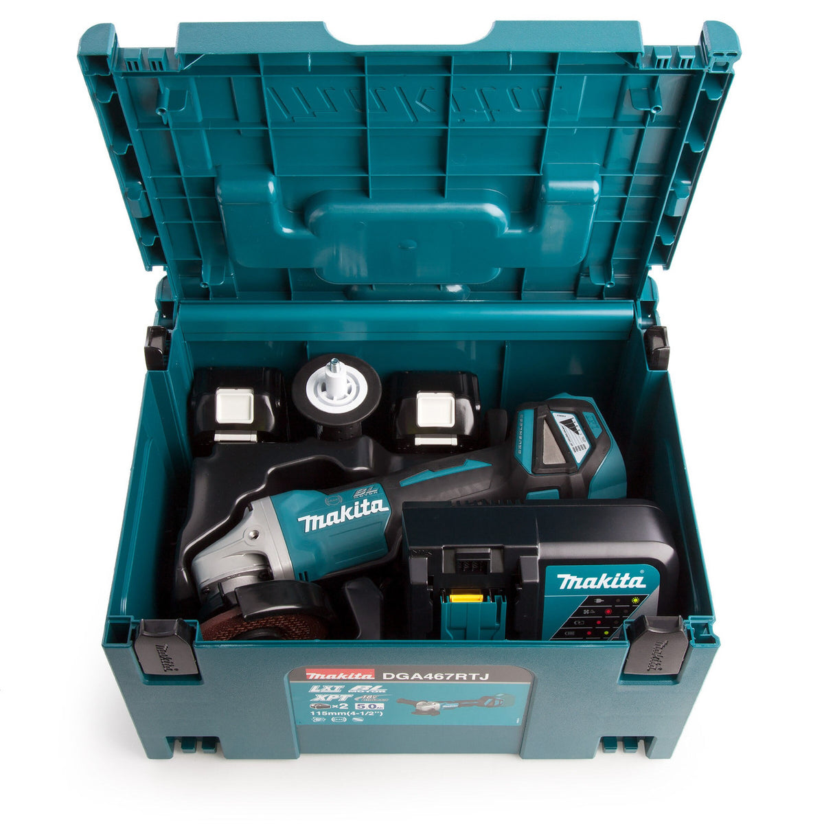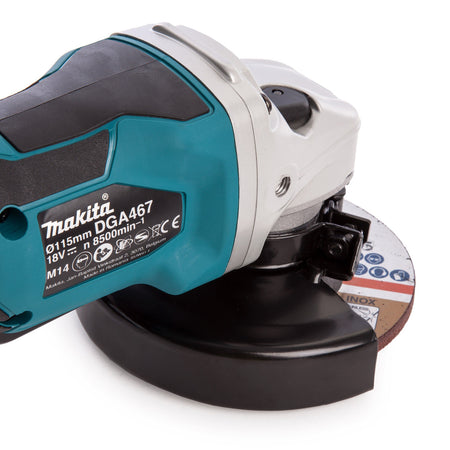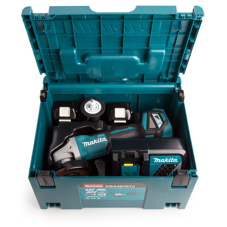 Makita DGA467RTJ 115mm 18V Cordless Angle Grinder (2 x 5.0Ah Batteries)