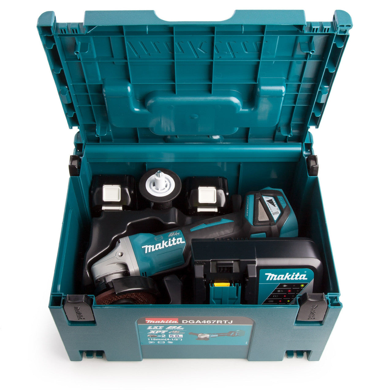 Makita DGA467RTJ 18V Brushless Angle Grinder 115mm (2 x 5.0Ah Batteries)