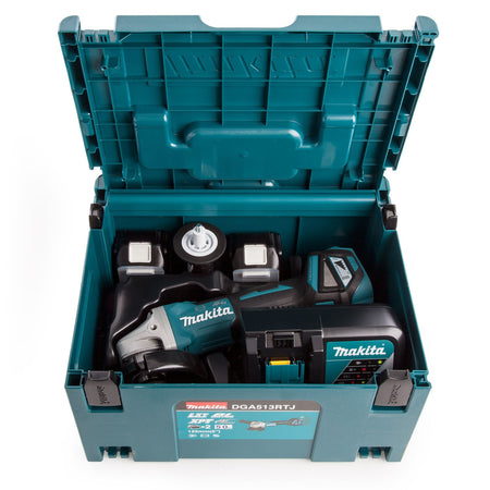 Makita DGA513RTJ 18V 125mm Cordless Angle Grinder in Makpac Case (2 x 5.0Ah Batteries)
