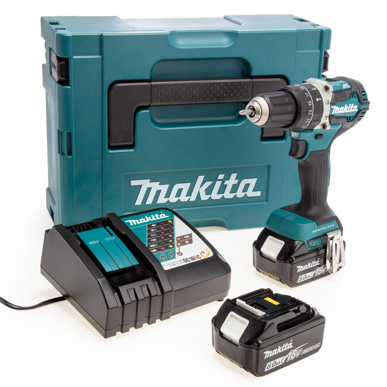 Makita DHP484RGJ 18V LXT Brushless Combi Drill (2 x 6.0Ah Batteries) in MakPac Case