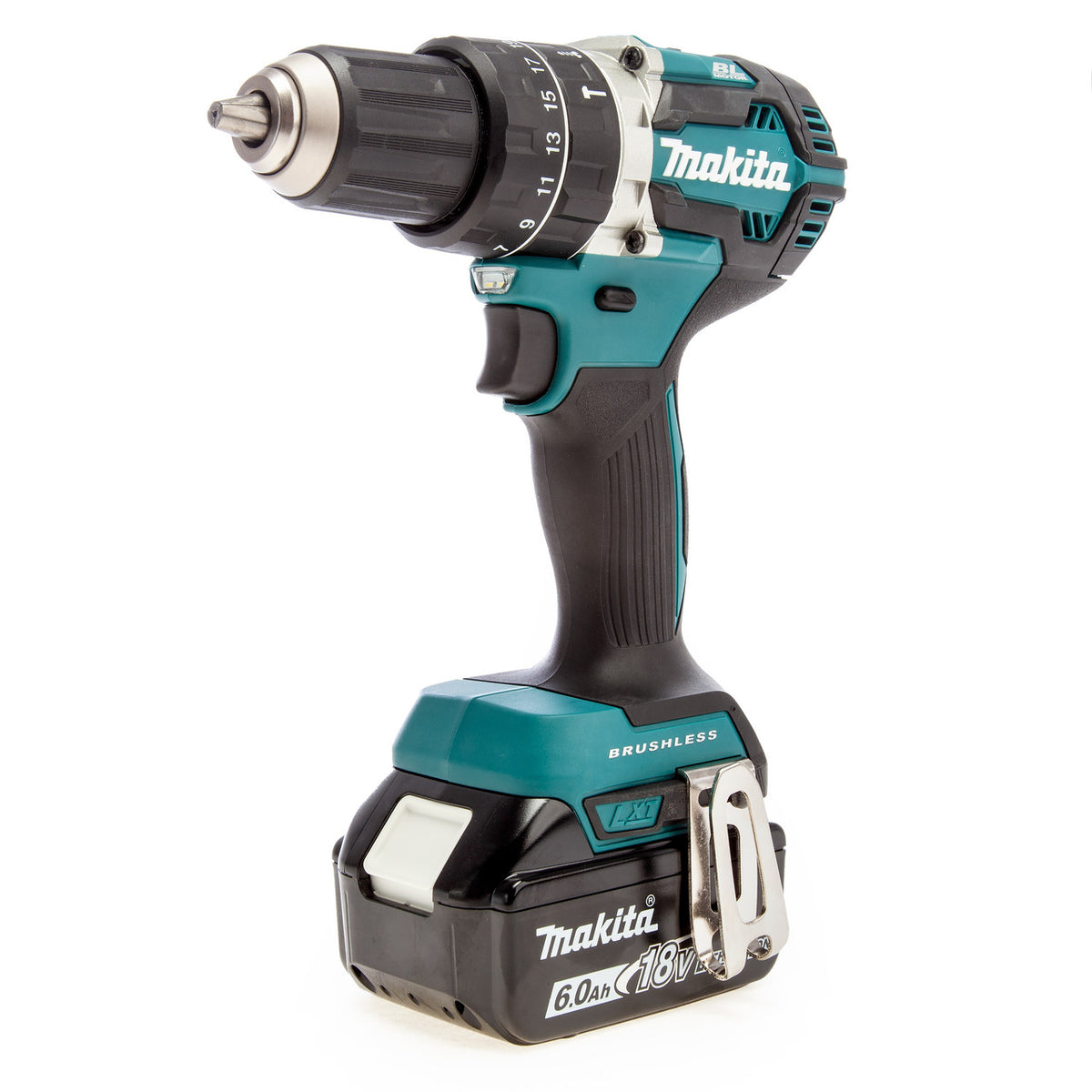 This Makita combi drill has Twin LED job lights with pre-glow and after-glow for work in poorly lit areas