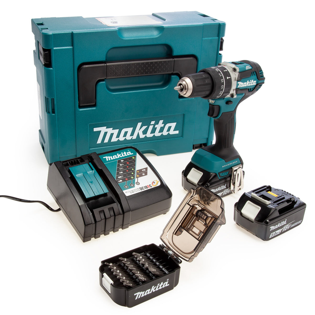 The Makita DHP484TJX9 18V LXT Combi Drill is a Limited Edition 50th Anniversary package including a 21 Piece Screwdriver Bit Set