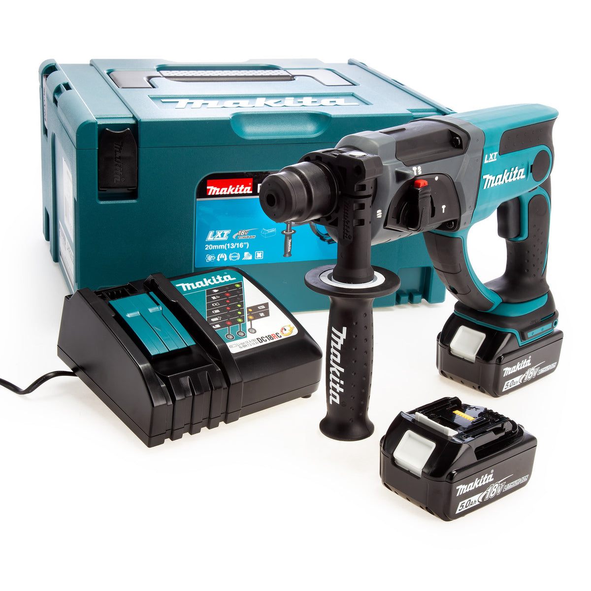 Makita DHR202RTJ 18V LXT SDS+ Rotary Hammer Drill (2 x 5.0Ah Batteries) in Makpac Case