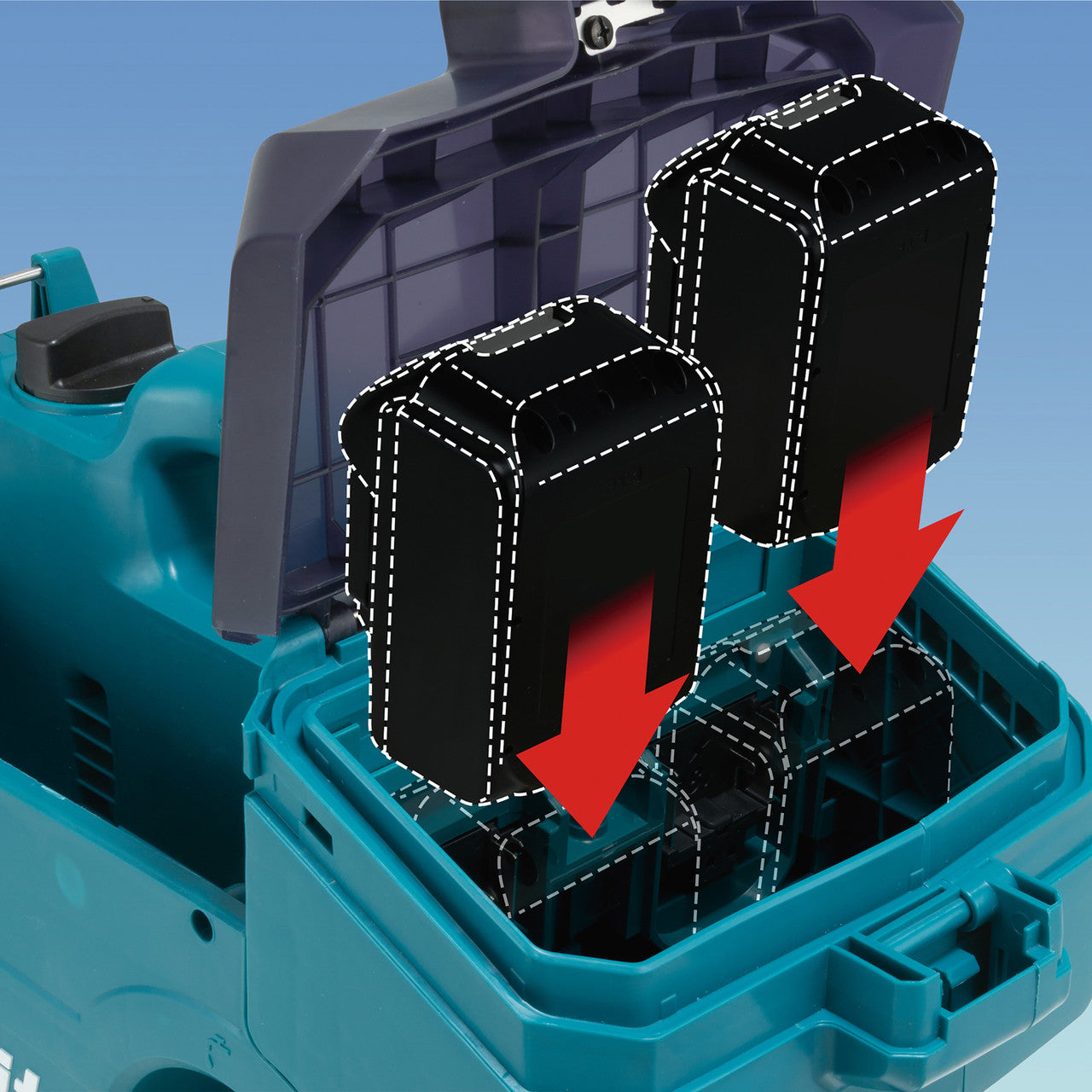 - Powered by two 18V Li-ion batteries in series to supply energy to the powerful 36V DC motor drive system.