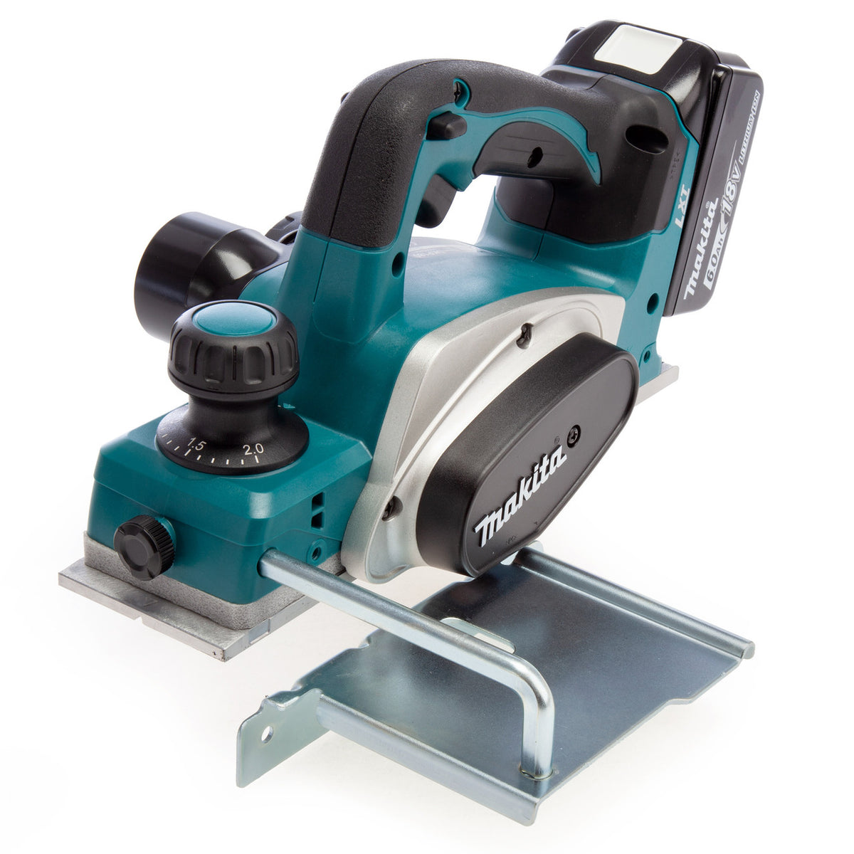 The Makita DKP180RGJ package includes 2 x BL1860B 6.0Ah Batteries, DC18RC Charger, Side Fence and Makpac Case. The powerful 82mm Cordless Planer gives freedom to move around the Jobsite without the constraint of a power socket being required. It has an easy to use adjustable depth setting with a large adjustment knob that has click stops and an easy to read scale with 0.1mm divisions.