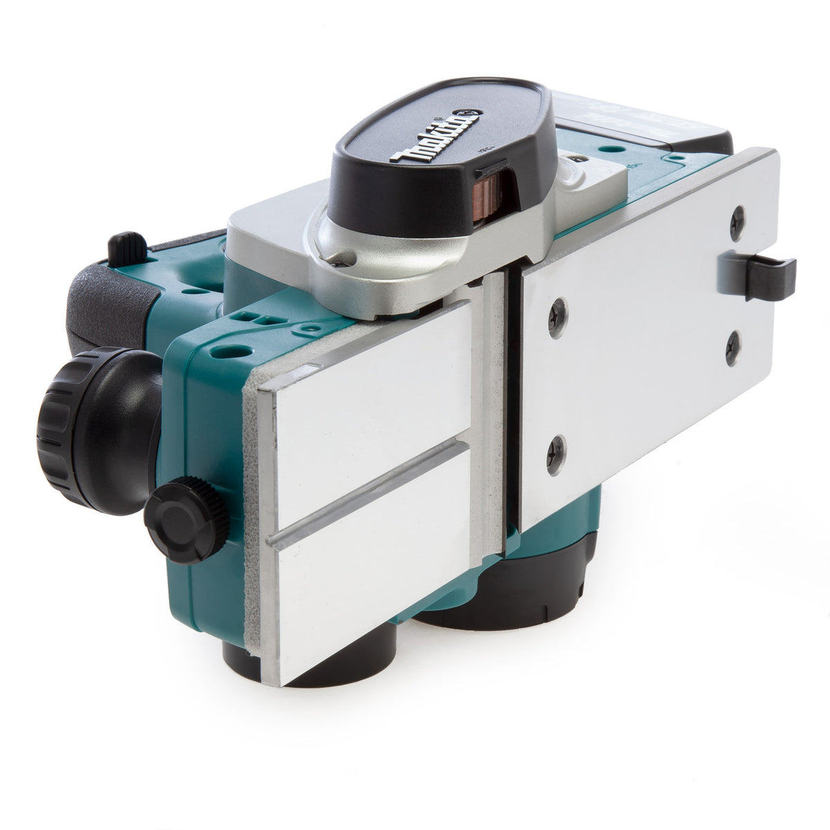 18V planer with an 82mm cutting width, sold in a MakPac case with 2 x batteries and a charger