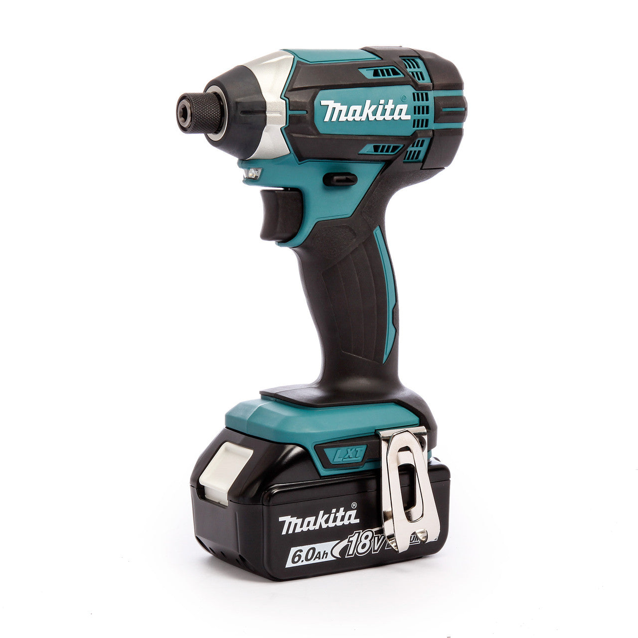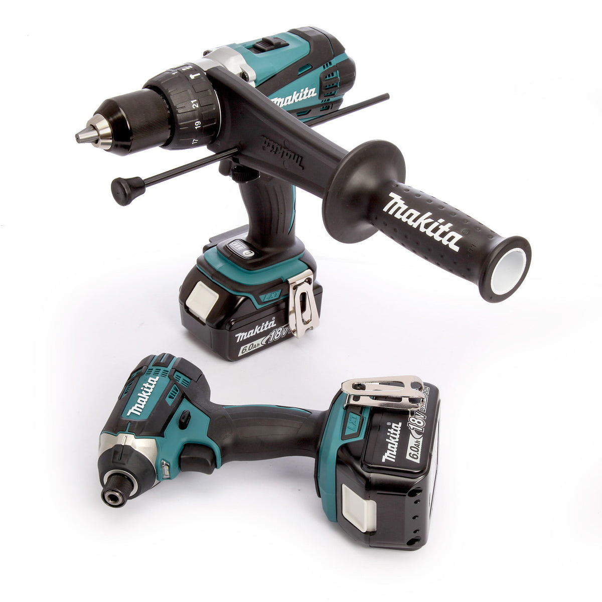This 2 piece cordless kit from Makita consists of the DHP458 Combi Drill and the DTD152 Impact Driver. Also included are 2 x BL1860 6.0Ah batteries, a DC18RC Charger and a Type 3 Makpac Connector Case. The DHP458 Combi Drill is a robust all-rounder with an overall length of 225mm and equipped with XPT (eXtreme Protection Technology) essential in harsh outdoor environments as it gives added protection against dust and dripping water. With side handle and depth stop. The DTD152 is a compact Impact Driver with an overall length of only 137mm. Although small it is packed with features like 0-3500 impacts per minute and bright twin LED job lights for working in dark conditions. It also has an all-metal gearbox for long life and a soft-grip handle designed to maximise thrust right to the bit.