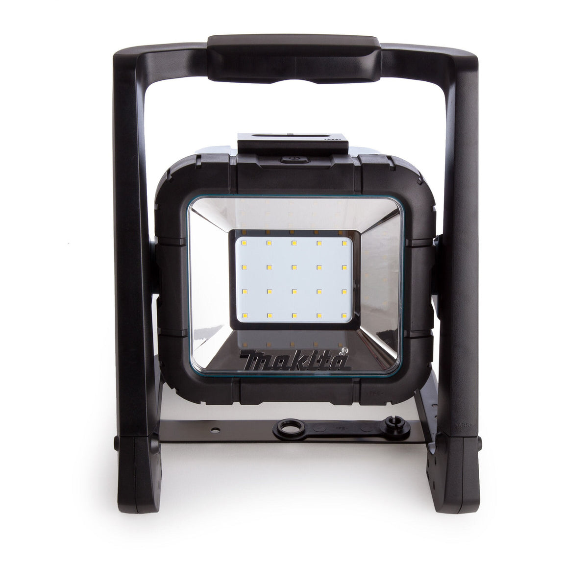 The Makita DML805 corded and cordless LED worklight is compatible with both 14.4V and 18V Makita Li-ion batteries. It also will happily run on mains electricity with the 240 Volt 3 pin plug. Comes as a body only so no battery or charger is supplied.
