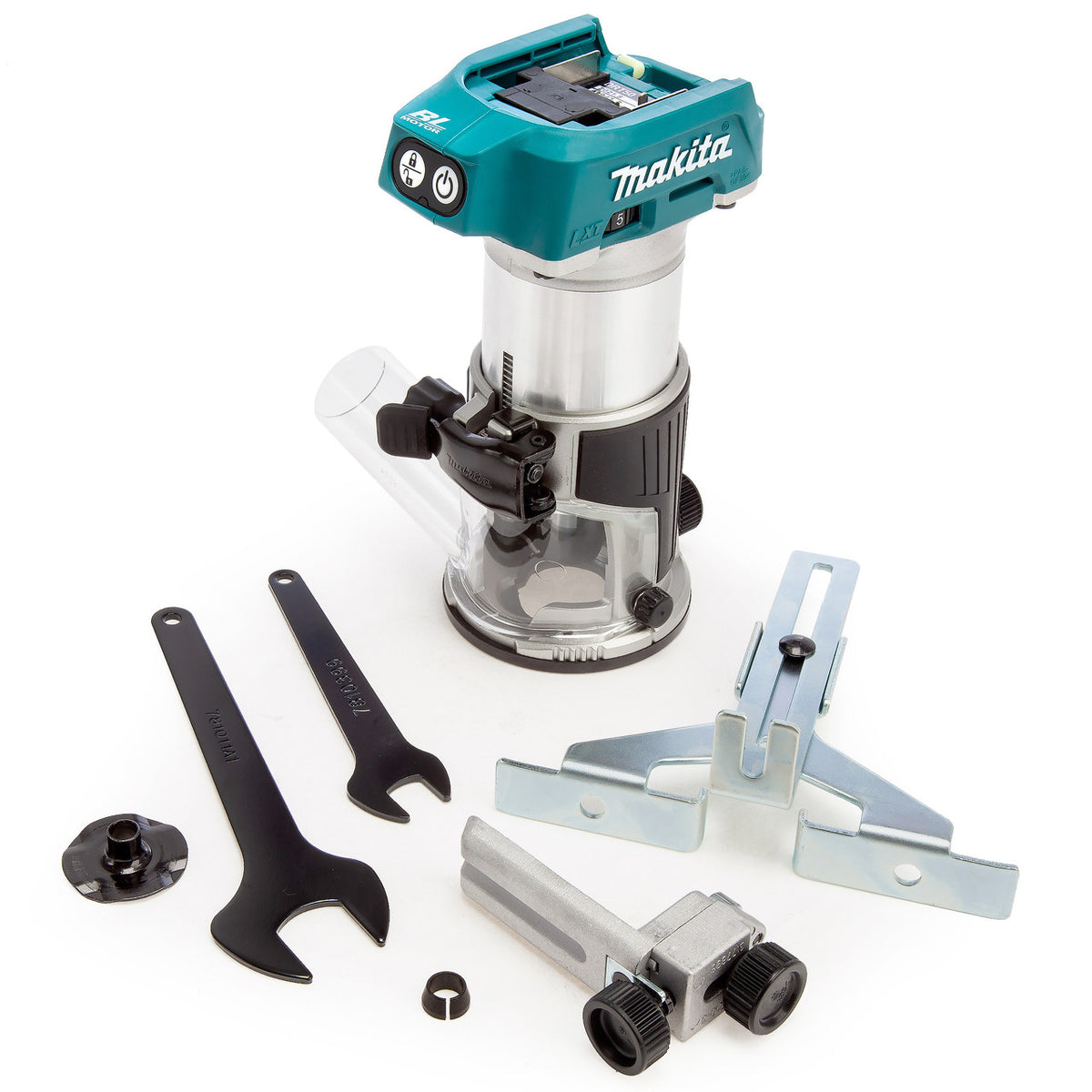 The Makita DRT50ZX4 is a powerful and versatile cordless router/trimmer that is perfect for a variety of woodworking tasks. It features a brushless motor for longer runtime and increased durability, as well as a variable speed dial with 5 settings to give you precise control over the cutting speed. The router also has a soft start function to prevent snagging, a shaft lock for easy bit changes, and an LED job light for improved visibility.