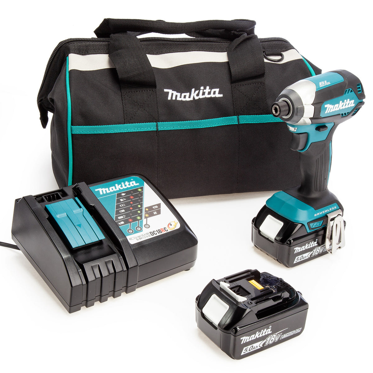 Makita DTD153 18V LXT Brushless Impact Driver, Toolbag, Charger (2 x 5.0Ah Batteries)