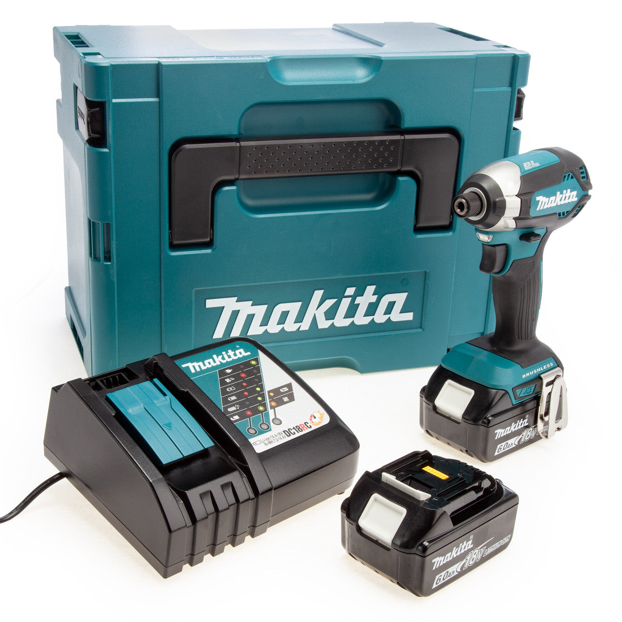 The Makita DTD153 impact driver features a brushless DC motor to improve run time by around 30% per battery and virtually no maintenance. This is a fully professional tool with enough torque for even the most demanding tasks. Features on the DTD153 include a one-touch sliding chuck for rapid bit change, LED job light for improved visibility and a rubber moulded handle for better grip.The trigger is ergonomically positioned and features variable speed and forward/reverse rotation plus an electric brake. It is compact and lightweight, yet extremely powerful with 170Nm of torque making it more than capable of driving woodscrews up to 125mm straight into timber without a pilot hole. This DTD153RGJ model comes with 2 x 6.0Ah batteries, a DC18RC Charger and a Makpak Case.