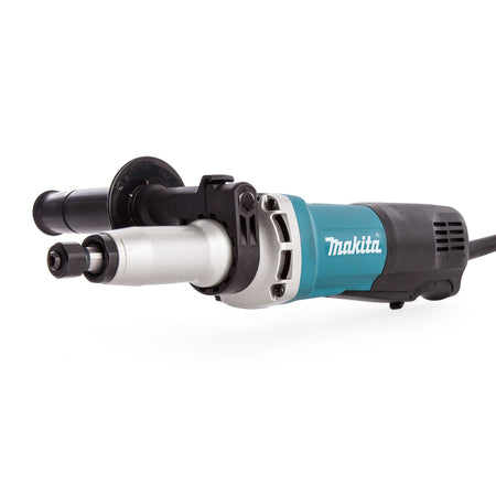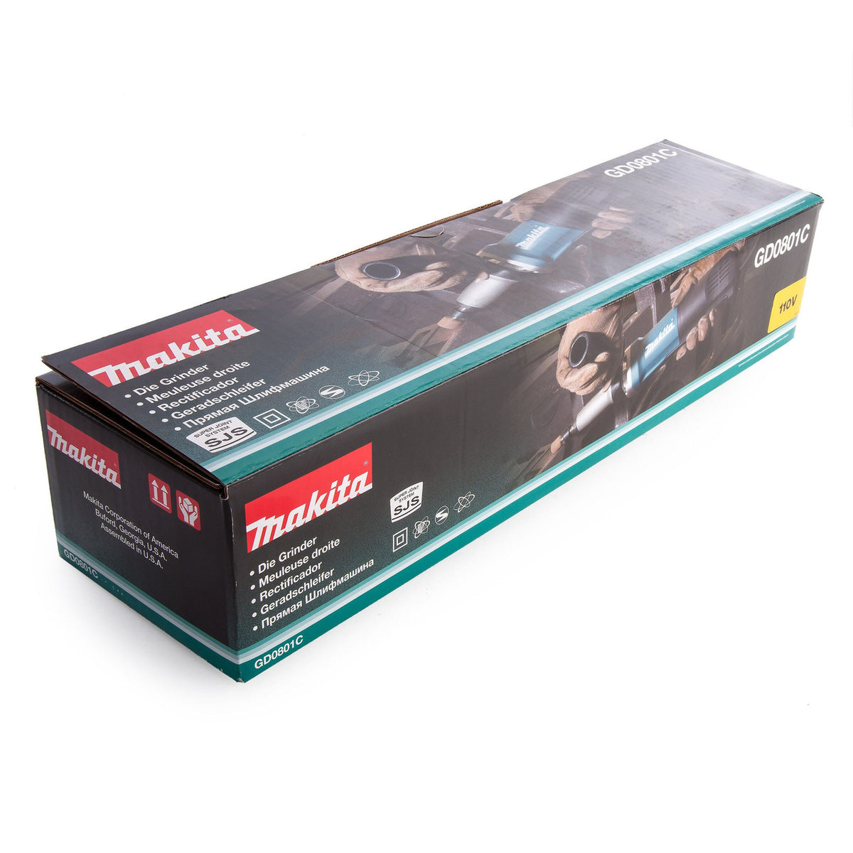 The Makita GD0801C is a paddle switch die grinder based on GD0800C. It is equipped with SJS technology which is a mechanical clutch system that helps prevent motor and gear damage by allowing the drive shaft to slip if the wheel is forced to stop. Combining powerful 6.6 AMP motor with motor and gear protection for longer-lasting grinding performance and a large flush-mount paddle switch for increased convenience. Comes in 110V and 240V models and is sold with a side handle and 2 x spanners in a cardboard carton.