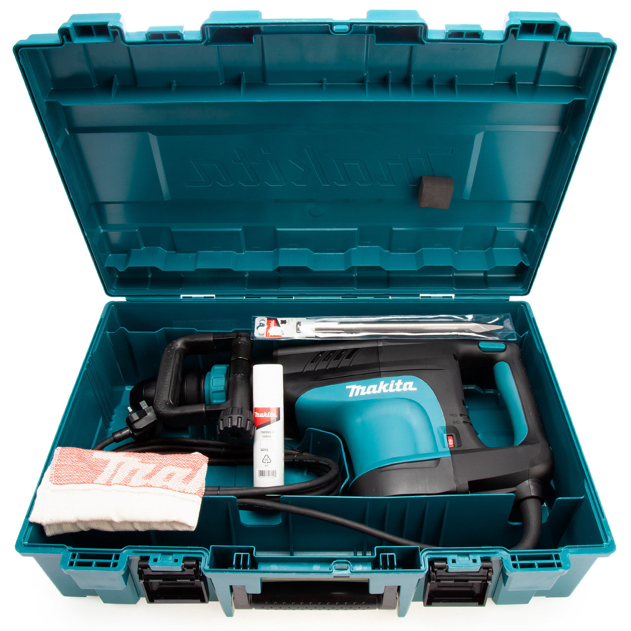 Makita HM1203C 1510W Demolition Hammer Drill complete with bull point, bit grease, side handle and carrying case