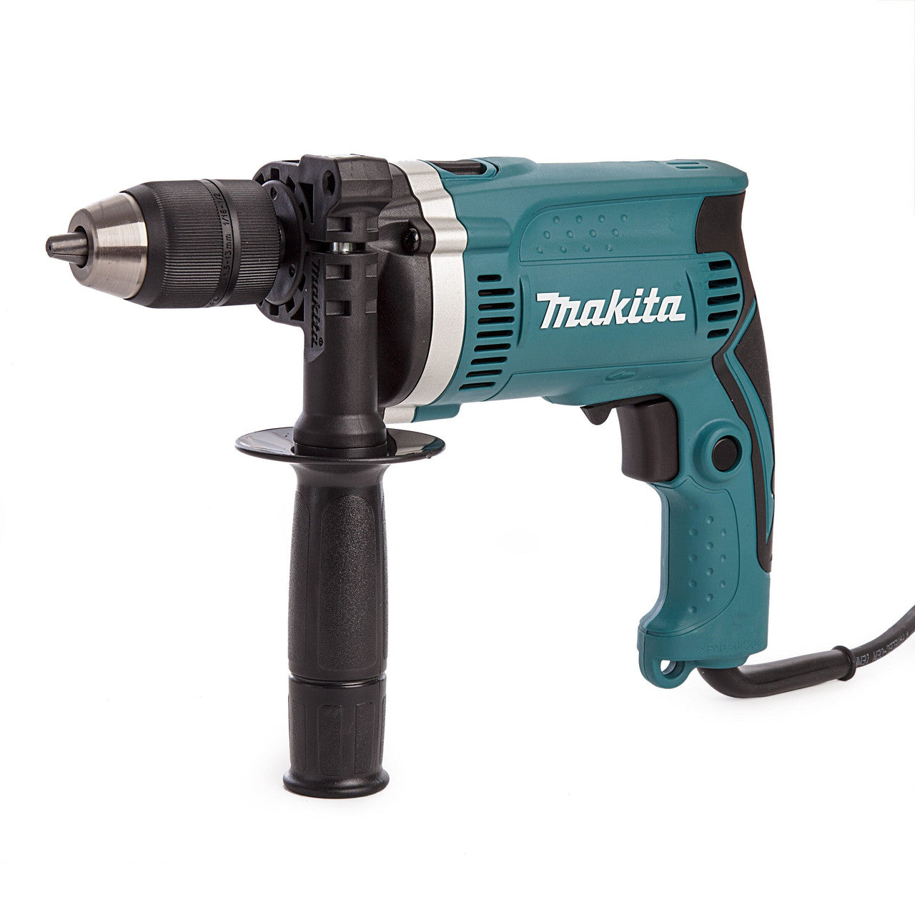 Makita HP1631K percussion drill, complete with depth guage, keyless chuck and side handle. Available in 110 and 240 volts.