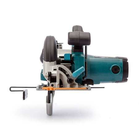 The Makita HS7100 is a compact circular saw with great design and easy to use functions, developed as the successor model of the 5705R. It has a bevel angle up to 50 degrees and a maximum cutting capacity of 67mm with fine parallel adjustment of the base plate to the saw blade. To give a better cutting view there is a blower function which keeps the cut line free of sawdust. A dust port is also provided which can be connected to a vacuum for a cleaner working environment. The 1400W motor has a flat-ended housing which is handy for standing the machine on for easier blade changes. For comfort, there is a soft-grip handle with non-slip elastomer which also cuts down the vibration. Sold without a case in a cardboard box.