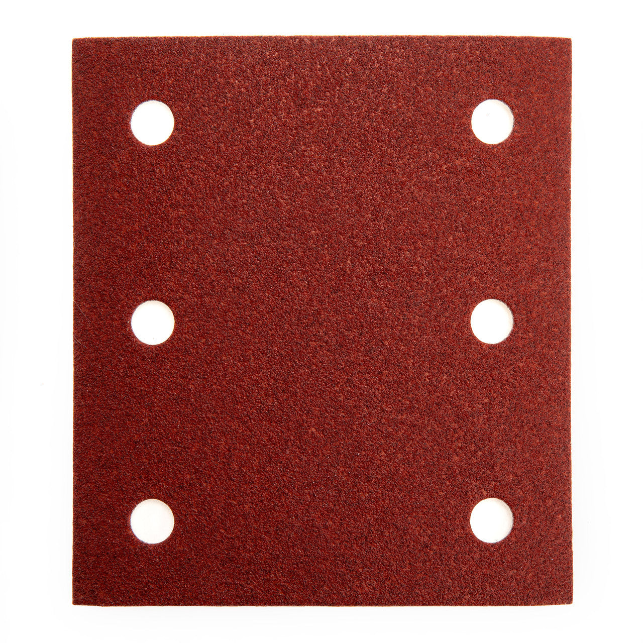 The Makita P-33124 is a Pack of 10 Hook and Loop Sanding Sheets with 6 holes, 1/4 Sheet in size and a 120 Grit rating. The grit size is determined by the number of holes per square inch required by a sieve designed to collect the grit. The smaller the number, the coarser the cut. A coated abrasive comprises 3 major components; abrasive grit, specific to the application; backing material to hold the abrasive and a bonding agent to glue the grit to backing. The quality of the materials and manufacturing method are critical factors in matching long life with fast cutting performance. Compatible with Makita BO4554, BO4555 and BO4561.