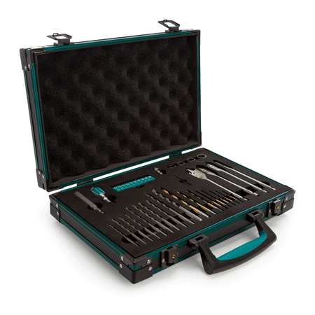 The Makita P-90255 is a must-have addition to anyone's kit. This 40 piece assorted accessory set contains an impressive range of screwdriver bits, brad points, HSS bits AND masonry bits - The capabilities with this set are endless! Whether it be for home DIY or professional trade use, this quality kit will carry out any job imaginable. Supplied in a durable, stylish aluminium case for safekeeping and ease of transport.