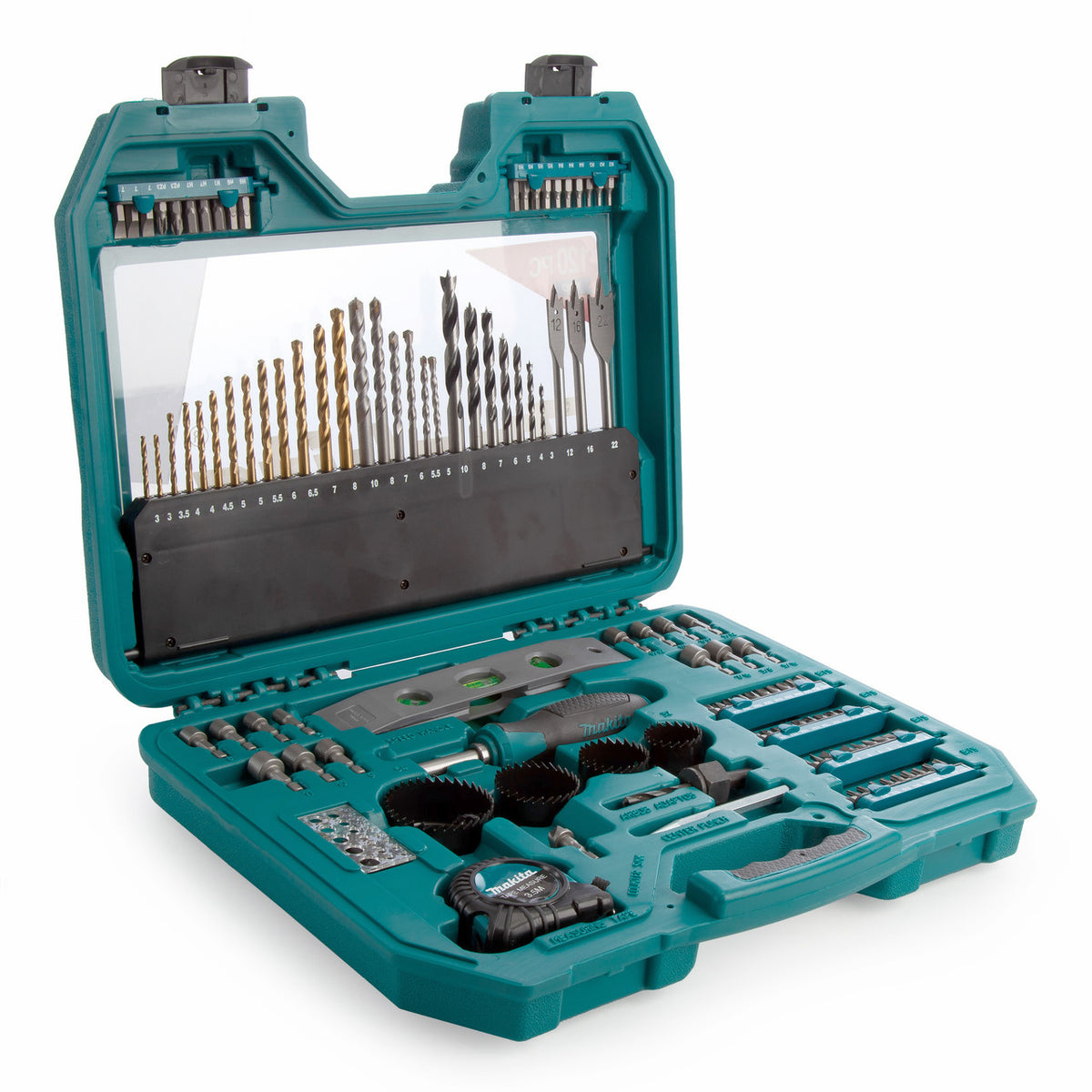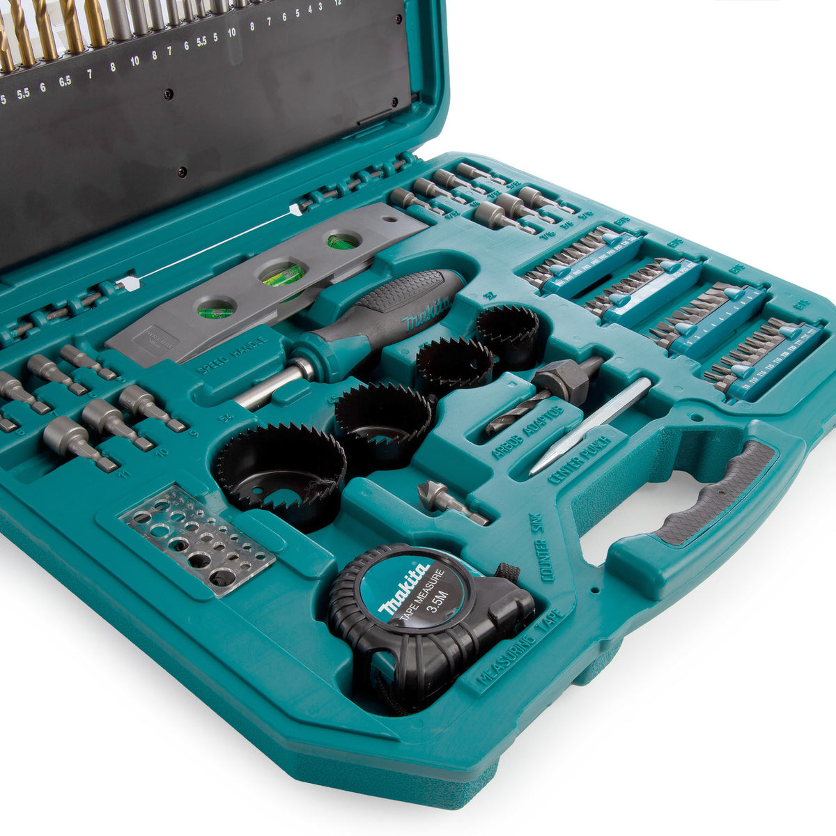 The Makita P-90370 is a 120 piece accessory set from the Pro range. It is extremely high quality, designed for professional use. This kit contains a wide variety of different screwdriver bits, drill bits and general tools suited for all jobs stored handily in a stylish heavy duty case for safekeeping and ease of transport.
