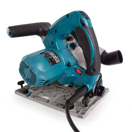 The Makita SP6000J is a professional circular saw with plunge cutting facility which can perform an impressive 56mm depth of cut. It can be used in conjunction with its guide rail (not supplied) to achieve perfectly straight cuts with no need to use additional and awkward straight edges with clamps. This saw is very easy to use, featuring a Tip-Resistant design and a Depth Stopper for splinter-free cutting. Other features include a Variable Speed Trigger, Constant Speed Under Load, Electronic Brake, Soft Start and Double Insulation for added safety.