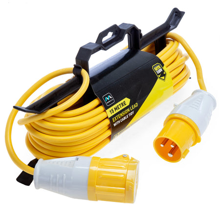 The Masterplug LVIL15 is a 16 Amp 15 Metre Extension lead with a hard plastic frame. This is handy for winding the cable away neatly when not in use for storage purposes. IP44 dust and weatherproof rated making this highly visible yellow cable ideal for using on site.