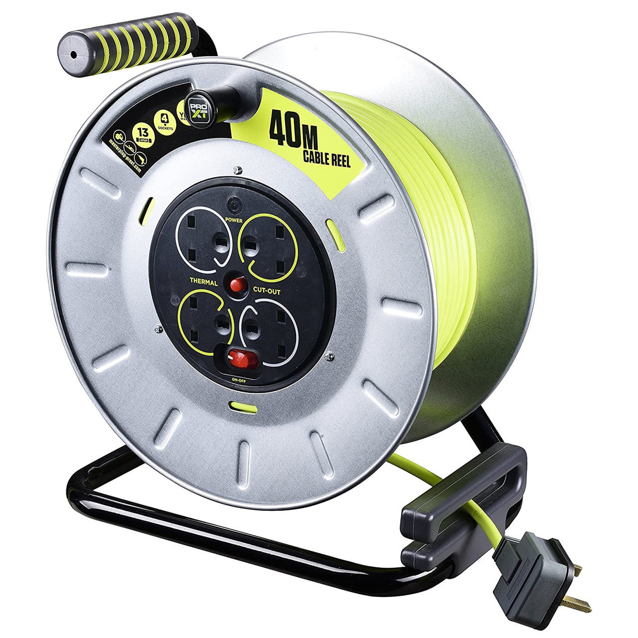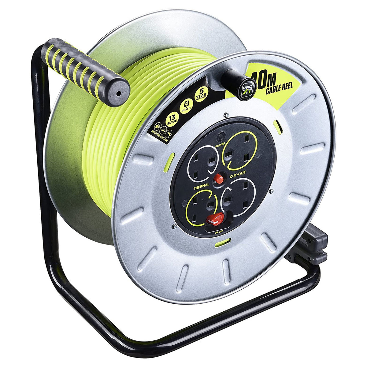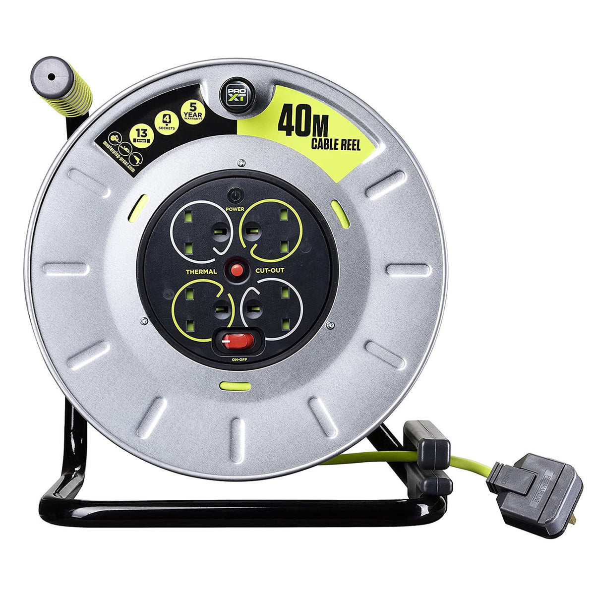 Masterplug OTLU40134SL Pro-XT 13A Open Metal Cable Reel 4 Socket 40 Metres 240V