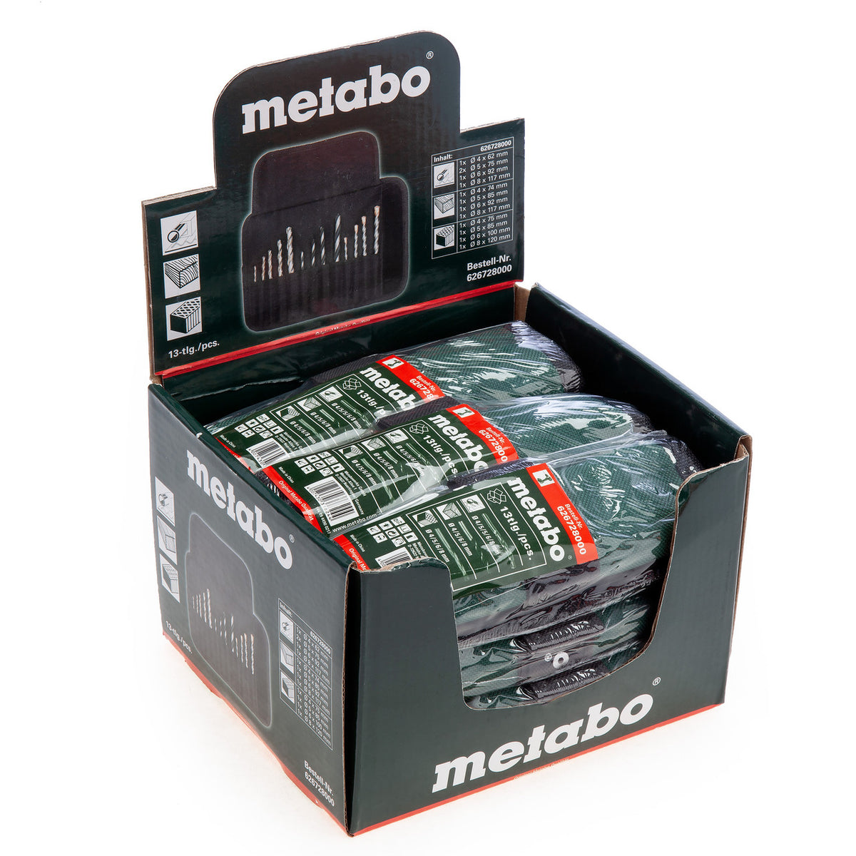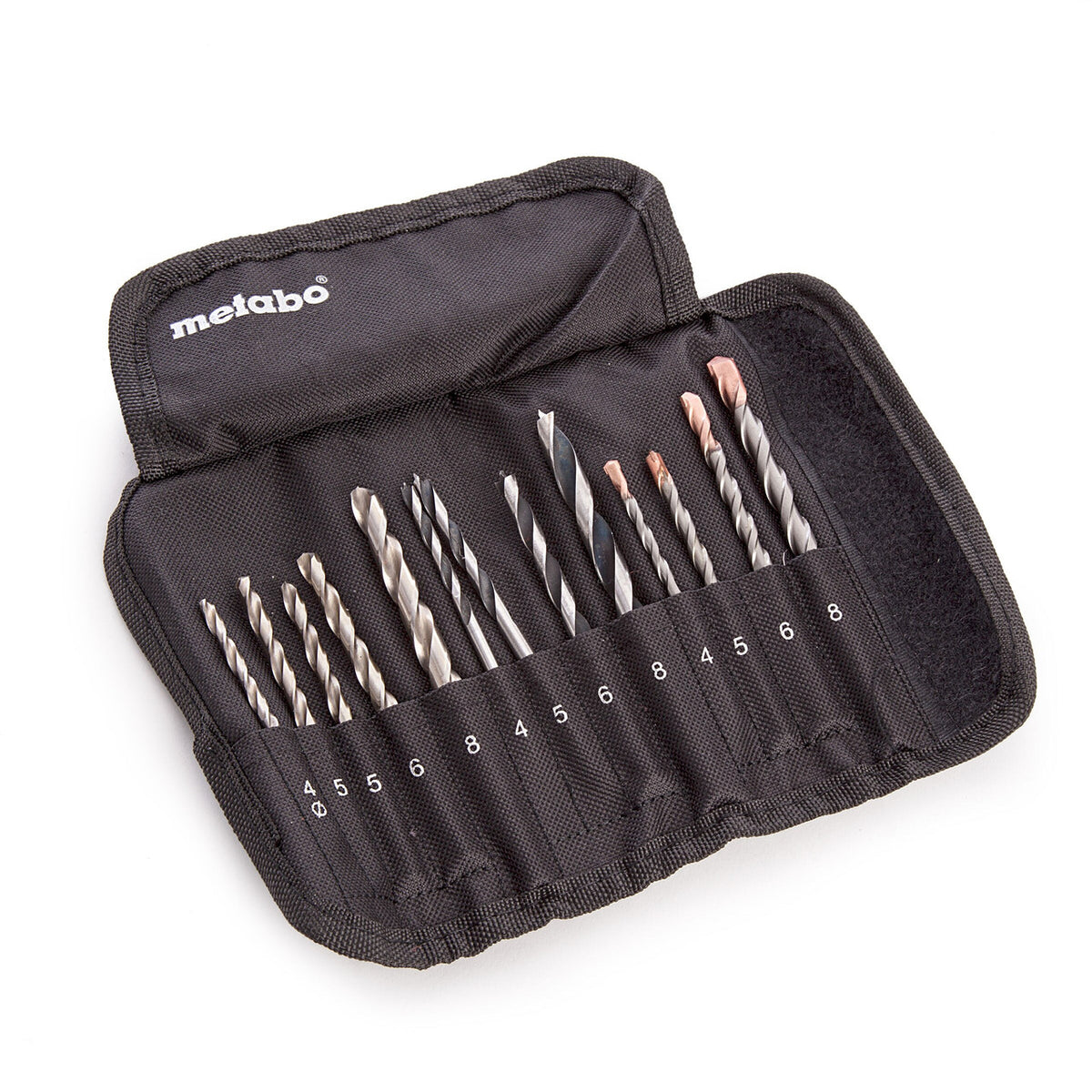 The Metabo 6.26728 Drill Roll-Up Set is a 13 piece set made up of Metal drill bits, Wood drill bits and Masonry drill bits. This set comes in a velcro style roll-up pouch which makes for easy storage and transportation on the drill bits.