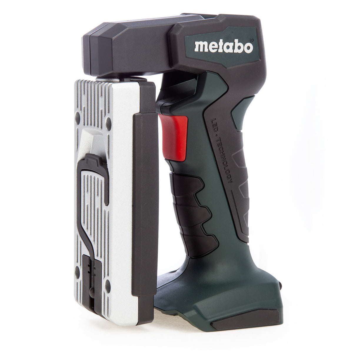 The Metabo 600370000 is a Body Only Cordless LED Inspection Lamp or Torch. It has a lamp head with six super bright LEDs that can swivel 180 degrees as well as 10 clickable positions. This covers any possible lighting angle permutations making the lamp extremely versatile. It also has an built in hanging hook. Sold without battery or charger in a cardboard box.