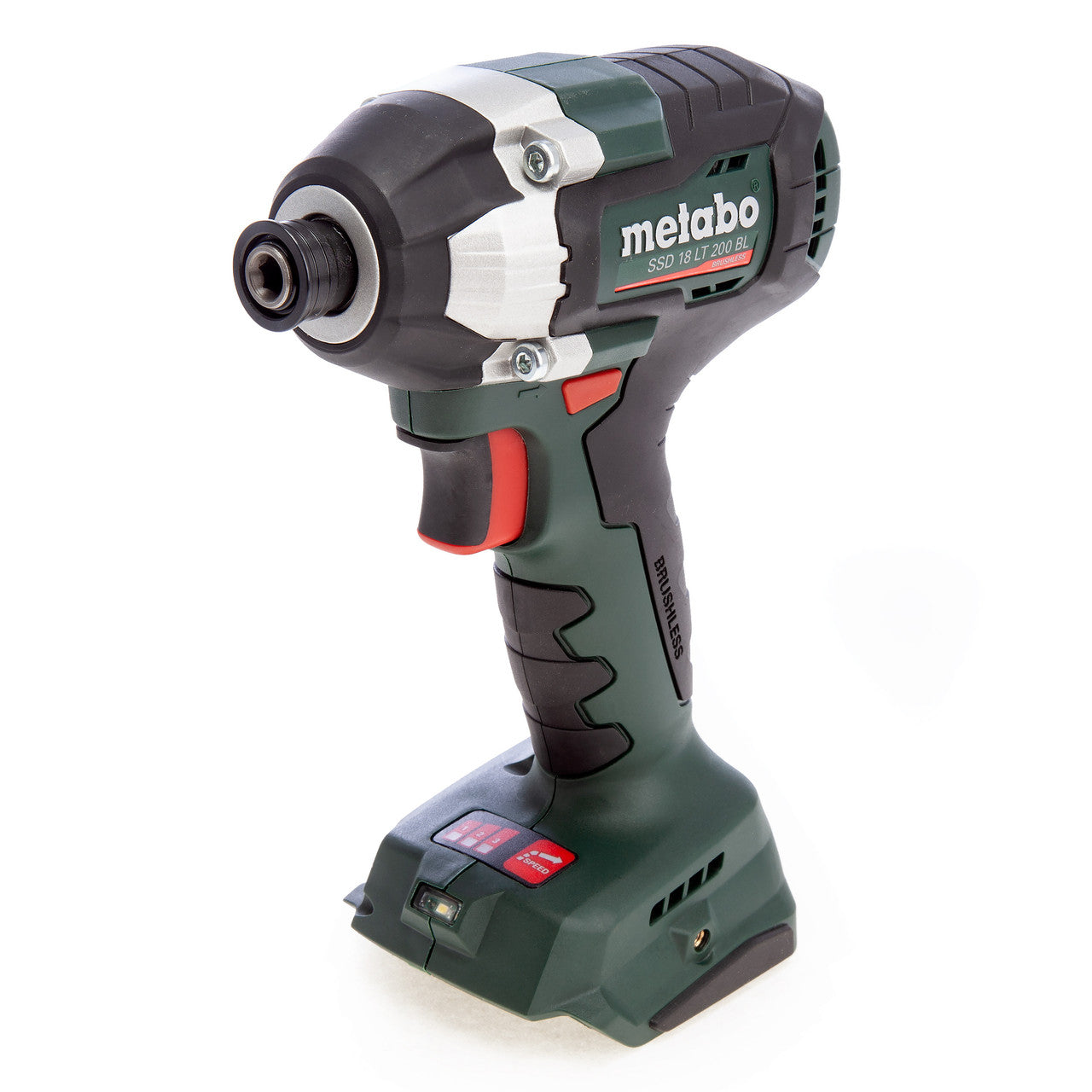 The Metabo SSD 18 LT 200 BL Impact Driver is a compact Cordless Impact Driver with a 1/4" hexagon socket drive and a maximum torque of 200 Nm. Fitted with the unique Metabo brushless motor for quick work progress and three speed/torque levels for a varied range of applications. Sold as a Body Only machine without battery or charger in a metaBOX 145 case.