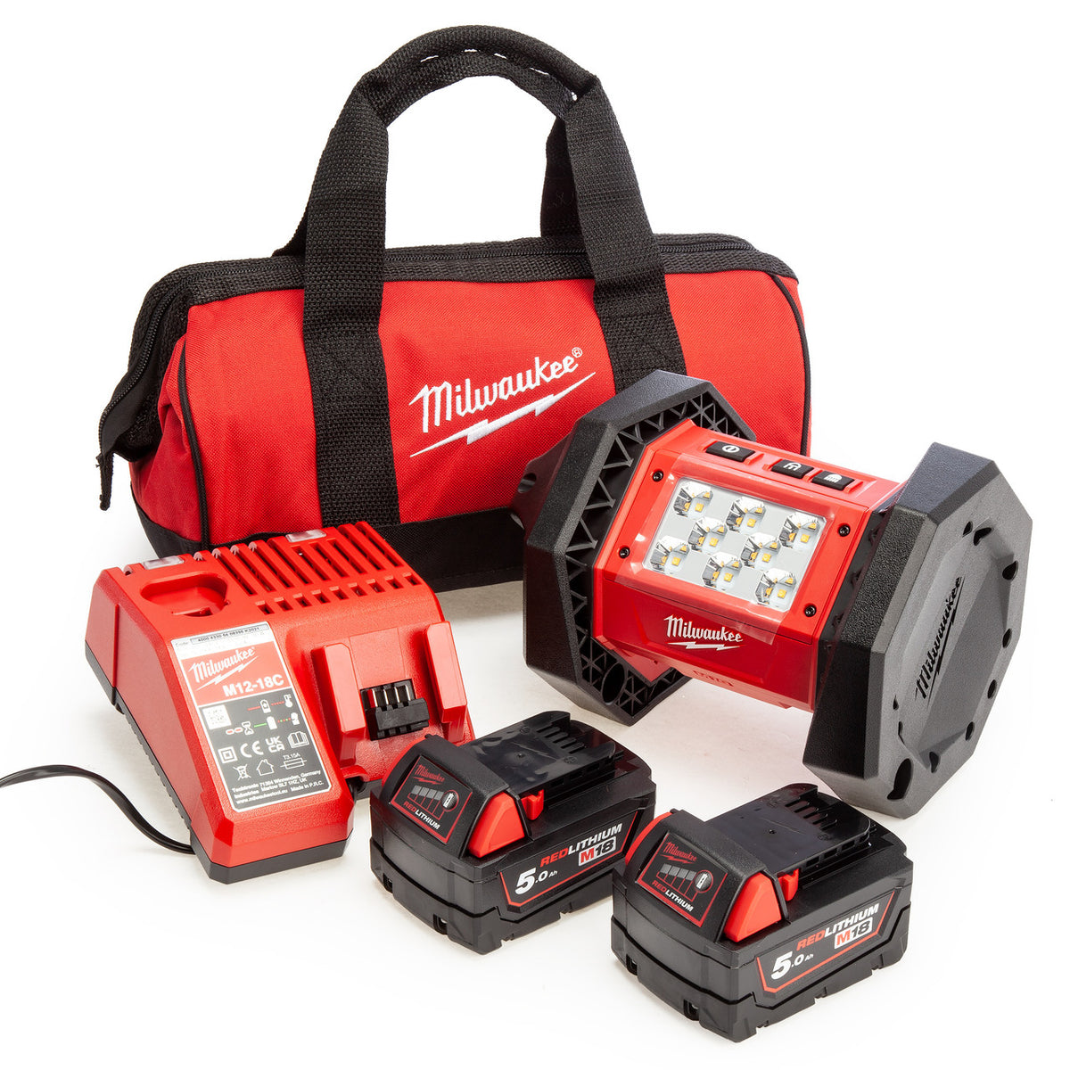 Milwaukee 18V Battery Kit + M18 AL LED Area Light (2 x 5.0Ah Batteries)