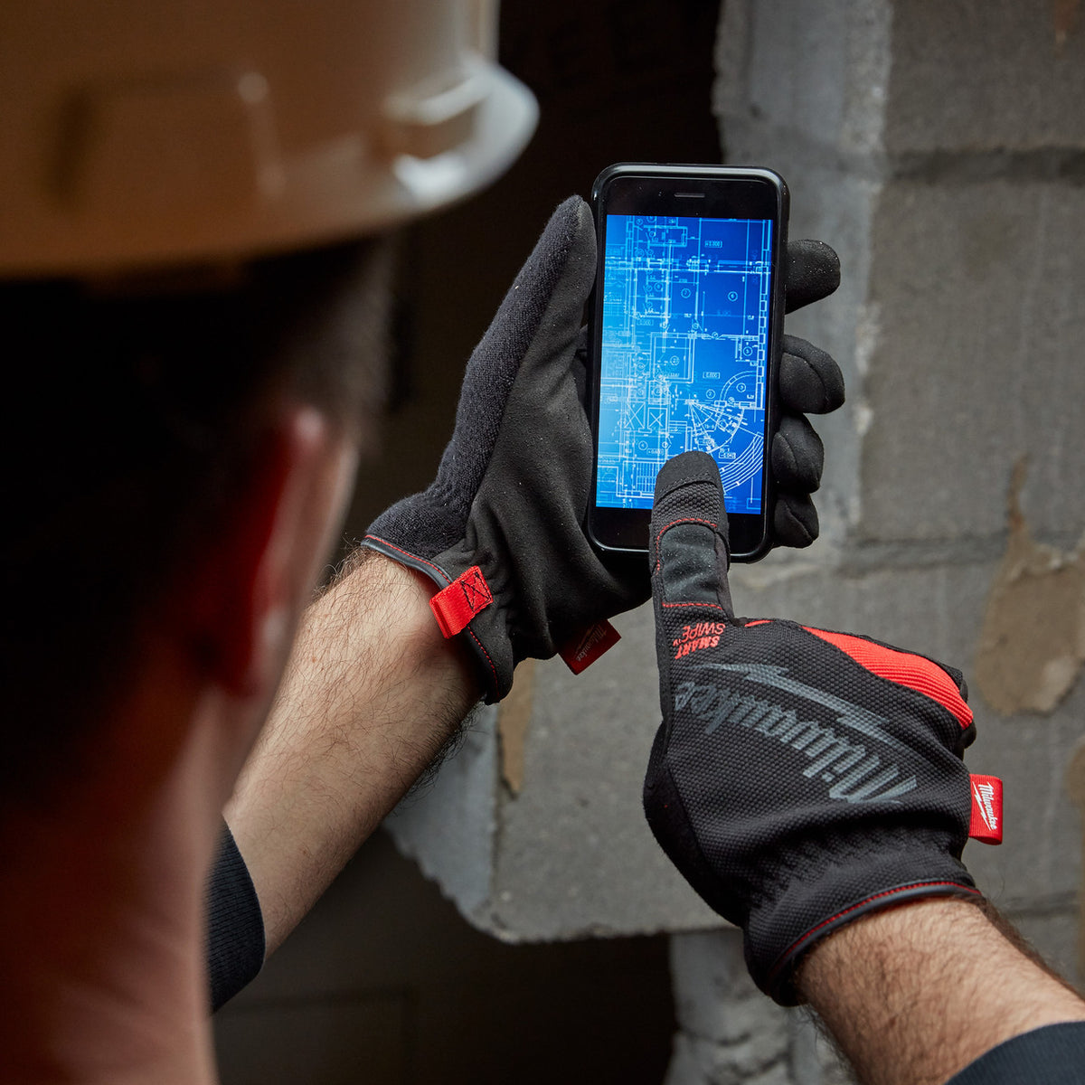 The Milwaukee 48229712 in Size 9 Large have a Smartswipe Knuckle Palm and Fingertips. The capacitive knuckle allows use of touchscreen devices without removing gloves or using dirty fingertips.