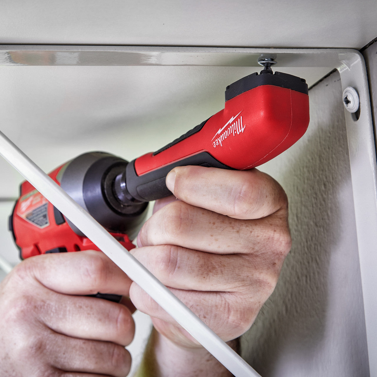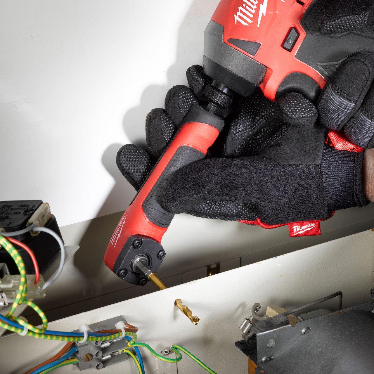 The Milwaukee 4932471274 Right Angle Attachment comes with 10 screwdriver bits in the most popular sizes. The right-angle attachment is a useful device for screwdriving or drilling applications in restricted, difficult-to-reach areas. Impact-rated to be suitable for use with the latest 18V impact drivers as well as cordless drill drivers. With Internal SHOCK ZONE and advanced gear design for excellent power transmission and impact durability.