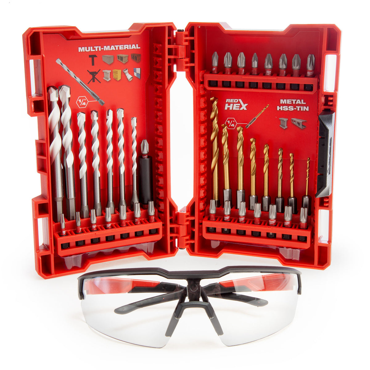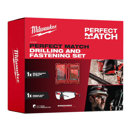 The Milwaukee 4932492890 Screwdriver & Drill Bit Set covers the most popular sizes and bit types with Safety Glasses