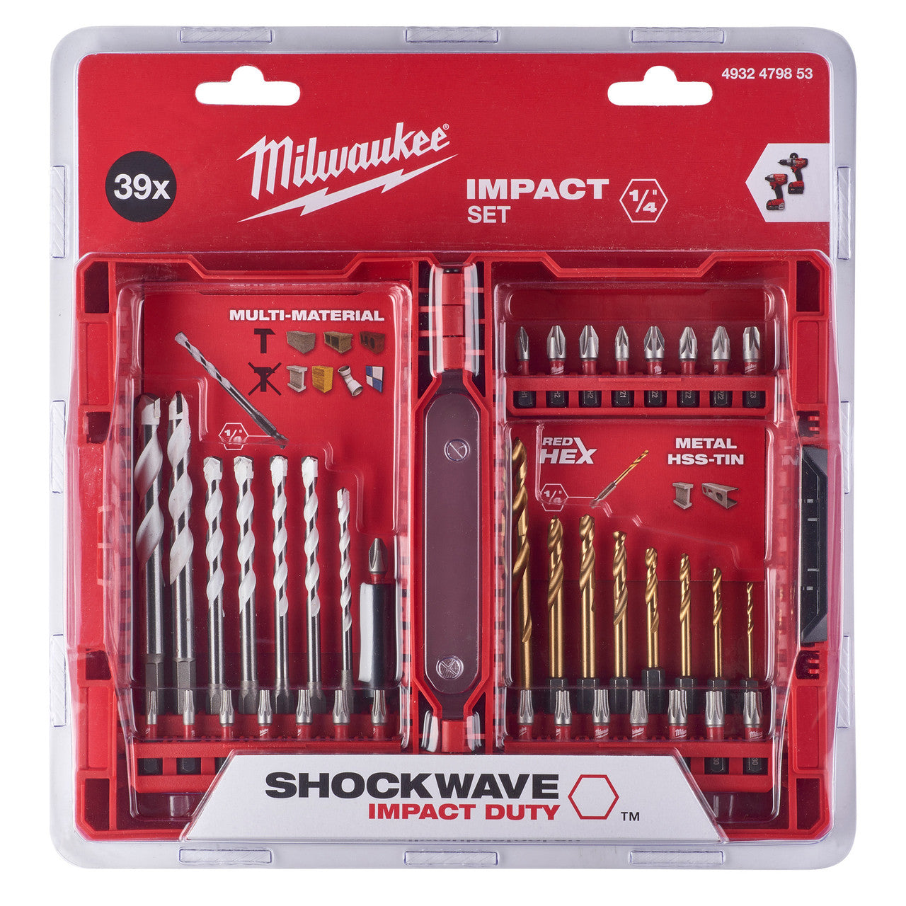 - Custom engineered steel - Milwaukee custom metal formula makes the SHOCKWAVE bits more resistant to shock from impacting