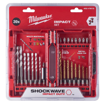 The Milwaukee 4932492890 is a 39 Piece Shockwave Impact Duty Screwdriver & Drill Bit Set with a Pair of 4932478763 Clear Safety Glasses included. The 39 Piece Set is designed for use with Impact Drivers. The drills cover drilling applications in Multi-Materials including brick plastics wood and masonry and also metal. The bits have laser hardened WEAR GUARD TIPS for improved wear resistance and protection of the fit over the life of the bit. The SHOCKWAVE IMPACT DUTY accessory line is not only ideal for heavy-duty impact applications but also delivers a full system solution for all the user's drilling and fastening needs.