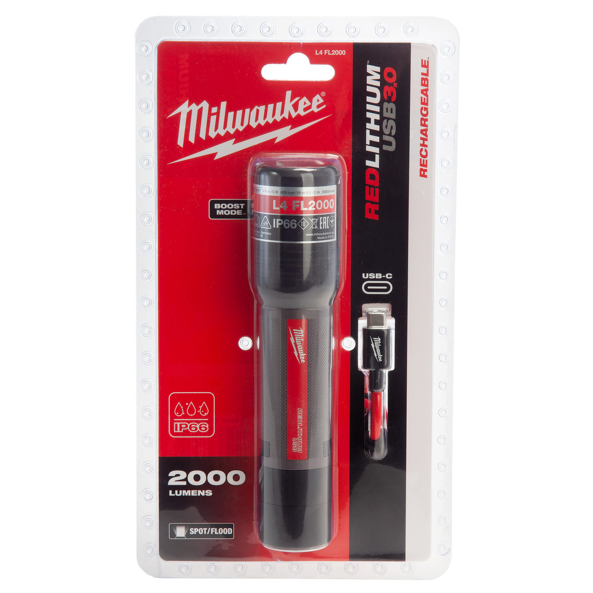 Milwaukee L4 FL2000-301 USB Rechargeable Torch 2000 Lumens
