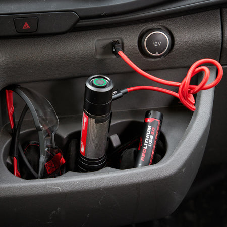 - Conveniently charge REDLITHIUM USB battery internally with USB-C cable from USB power source or AC outlet (wall plug not included)