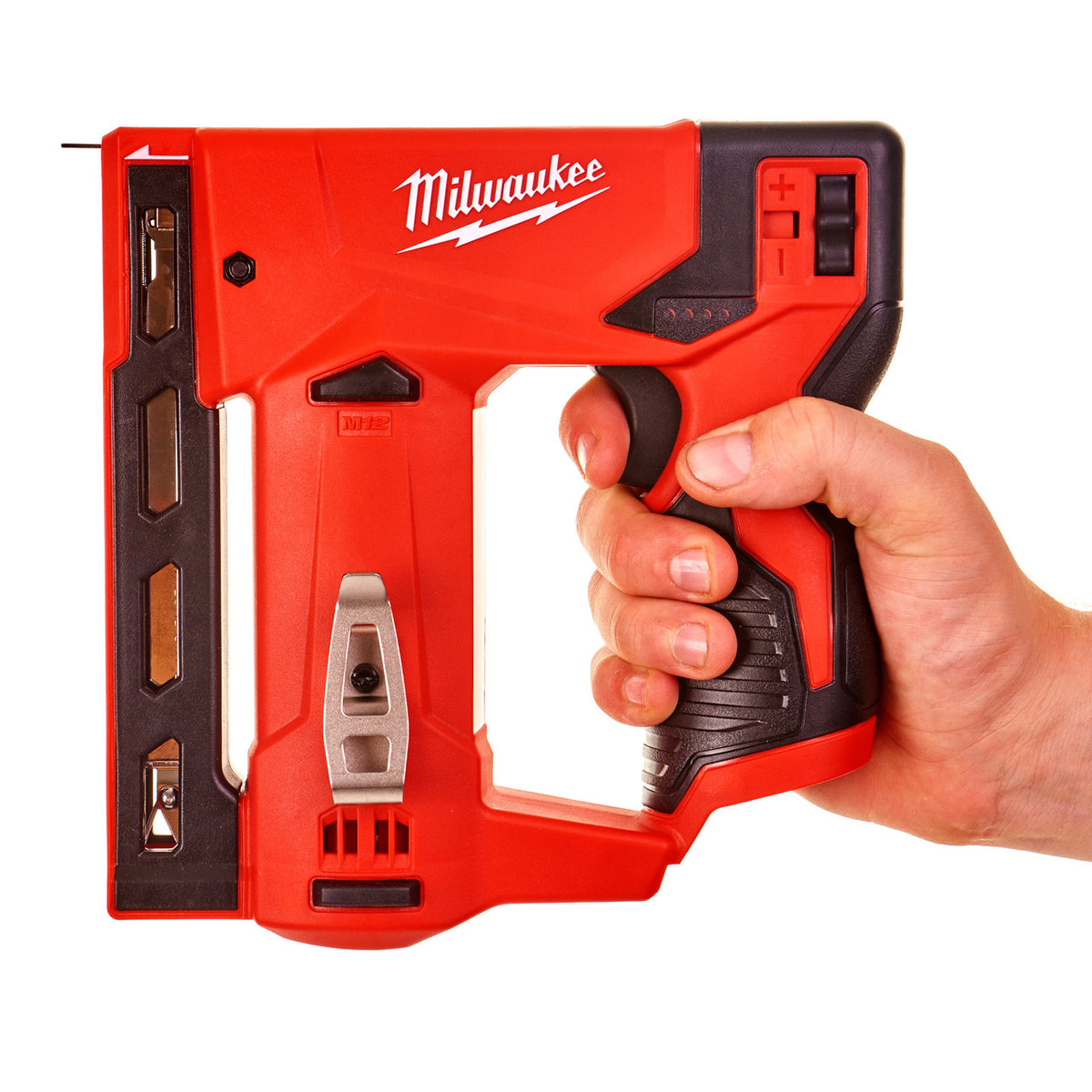 The Milwaukee M12BST-0 Stapler fires standard T11 T50 and T140 10.6 mm staples from 6 to 14 mm
