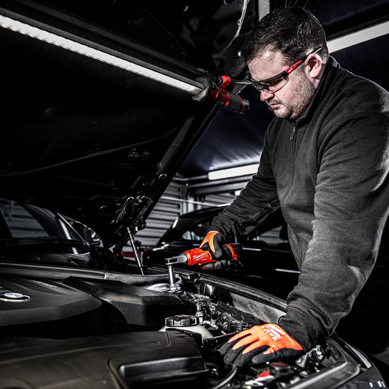 The M12 FHIR38 FUEL 3/8 inch Drive High-Speed Ratchet delivers fast application speed and increased productivity for the professional user. It produces up to 47Nm torque and 450rpm with a low profile design for accessing confined areas. You can expect it to fasten/remove 210 M8 bolts with one battery charge (M12B2) for all-day work.