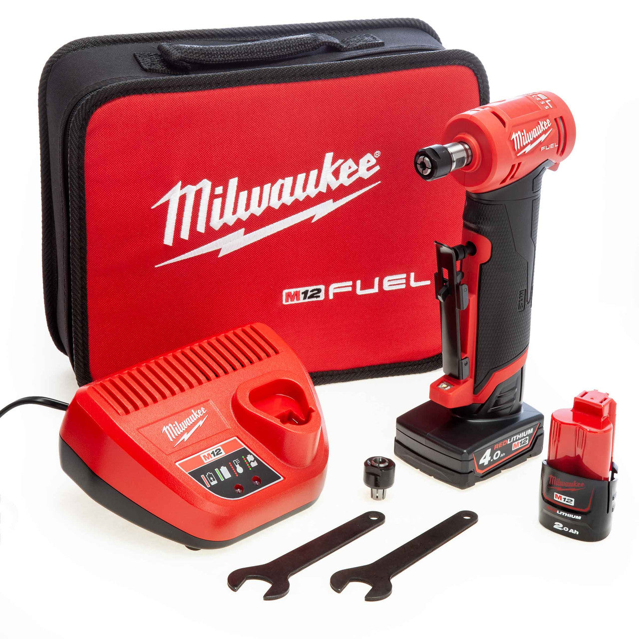 Milwaukee M12FDGA-422B FUEL Angled Die Grinder (1 x 2.0Ah & 1 x 4.0Ah Battery)