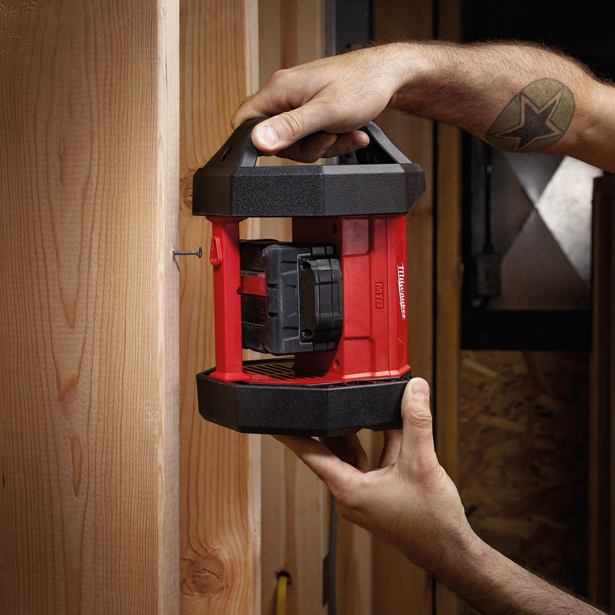 This LED Area Light from Milwaukee is up to 30% brighter than standard 250W halogen lights